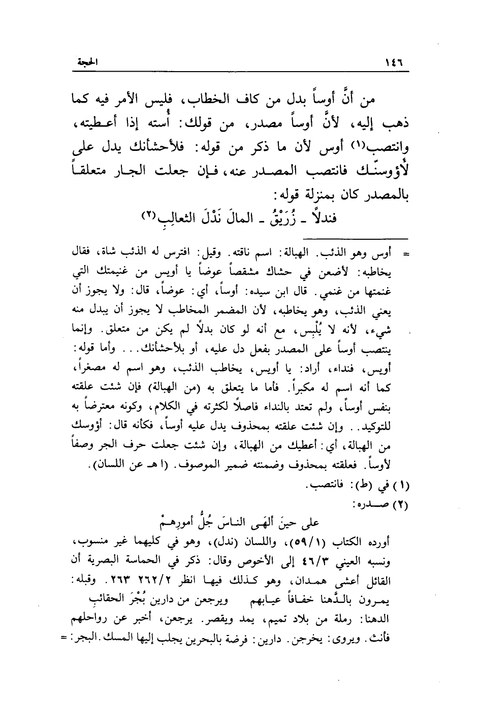 على حين ألهى الناس جلّ أمورهم أورده الكتاب (1/ 59)، واللسان (ندل)، وهو في كليهما غير منسوب، ونسبه العيني 3/ 46 إلى الأخوص وقال: ذكر في الحماسة البصرية أن القائل أعشى همدان، وهو كذلك فيها انظر 2/ 262 - 263. وقبله: