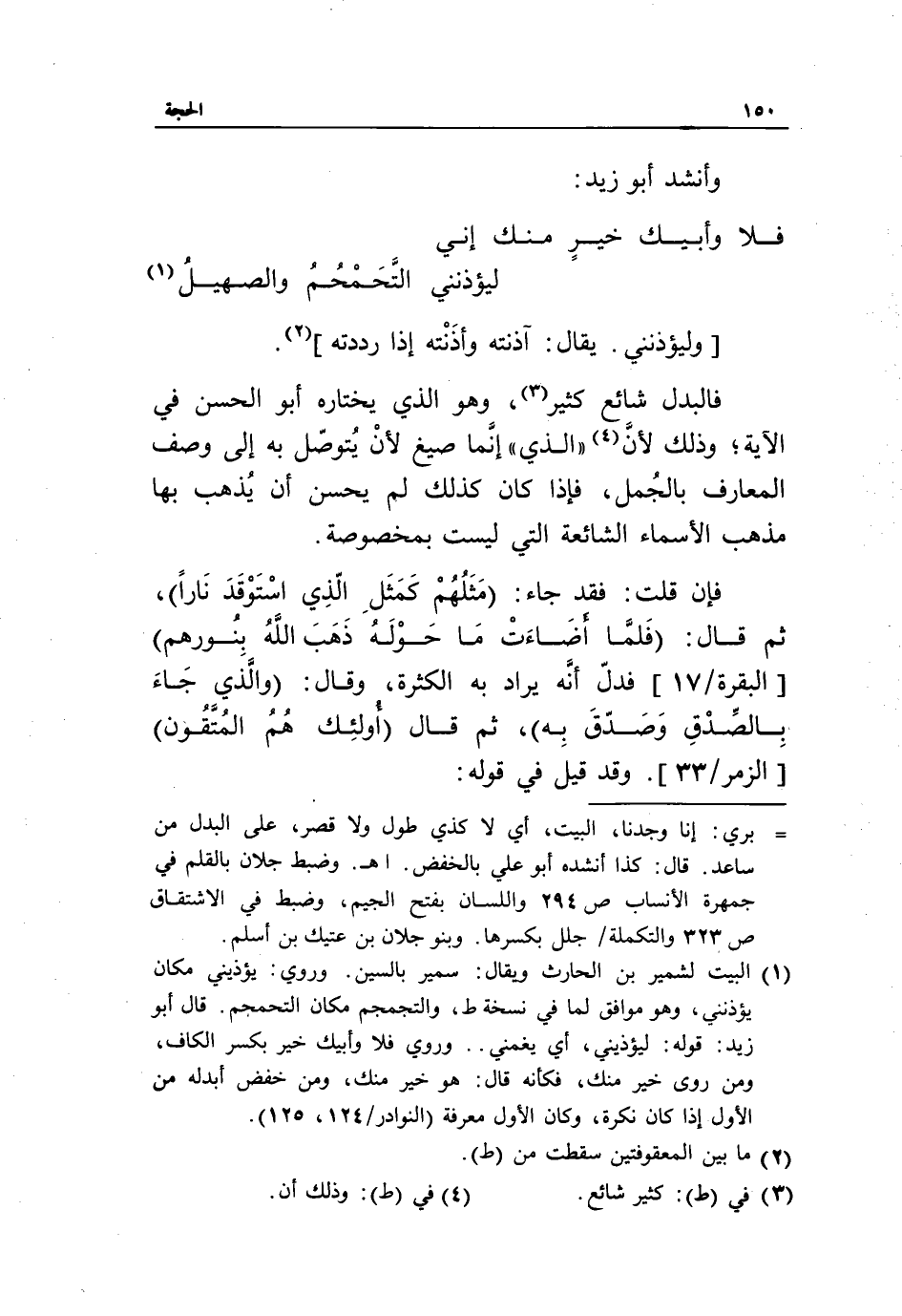 فالبدل شائع كثير «3»، وهو الذي يختاره أبو الحسن في الآية، وذلك لأنّ «4» «الذي» إنّما صيغ لأن يتوصّل به إلى وصف المعارف بالجمل، فإذا كان كذلك لم يحسن أن يذهب بها مذهب الأسماء الشائعة التي ليست بمخصوصة.
