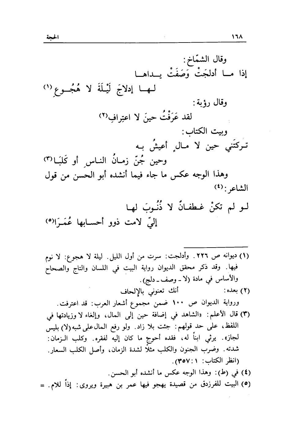 «3» وهذا الوجه عكس ما جاء فيما أنشده أبو الحسن من قول الشاعر: «4»