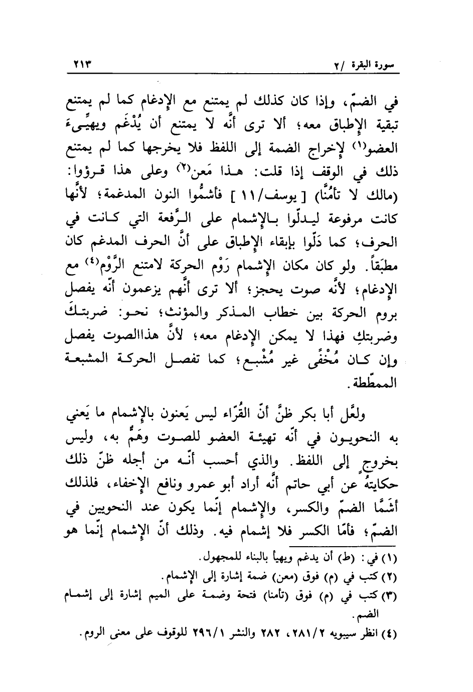 (4) انظر سيبويه 2/ 281، 282 والنشر 1/ 296 للوقوف على معنى الروم.