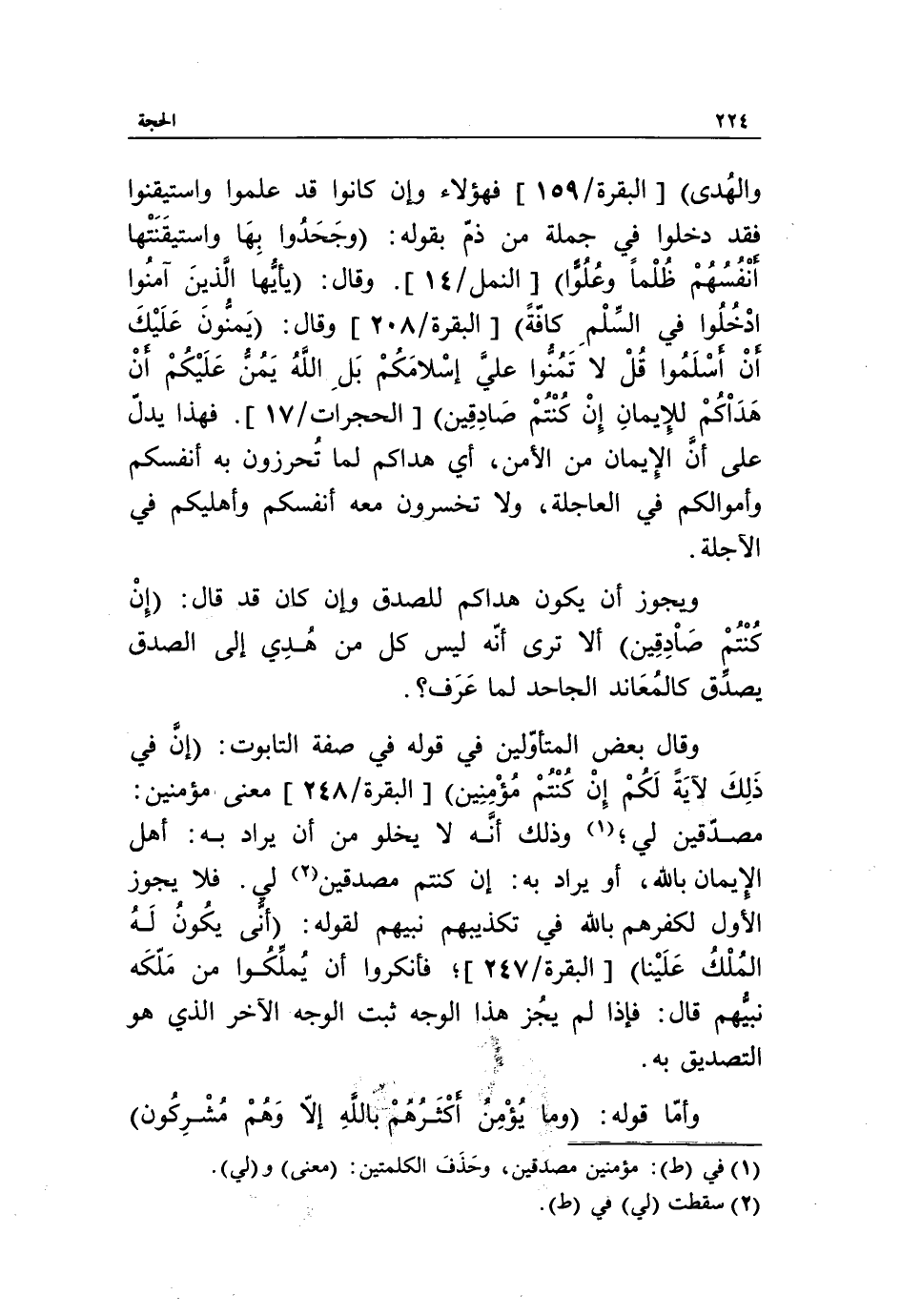 [البقرة/ 247]، فأنكروا أن يملّكوا من ملّكه نبيّهم قال: فإذا لم يجز هذا الوجه ثبت الوجه الآخر الذي هو التصديق به.