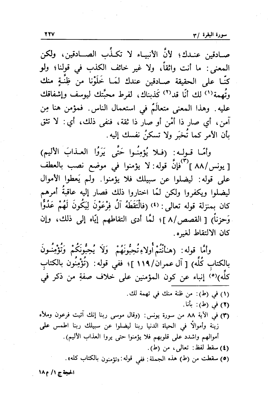 (3) في الآية 88 من سورة يونس: وَقالَ مُوسى رَبَّنا إِنَّكَ آتَيْتَ فِرْعَوْنَ وَمَلَأَهُ زِينَةً وَأَمْوالًا فِي الْحَياةِ الدُّنْيا رَبَّنا لِيُضِلُّوا عَنْ سَبِيلِكَ رَبَّنَا اطْمِسْ عَلى أَمْوالِهِمْ وَاشْدُدْ عَلى قُلُوبِهِمْ فَلا يُؤْمِنُوا حَتَّى يَرَوُا الْعَذابَ الْأَلِيمَ.