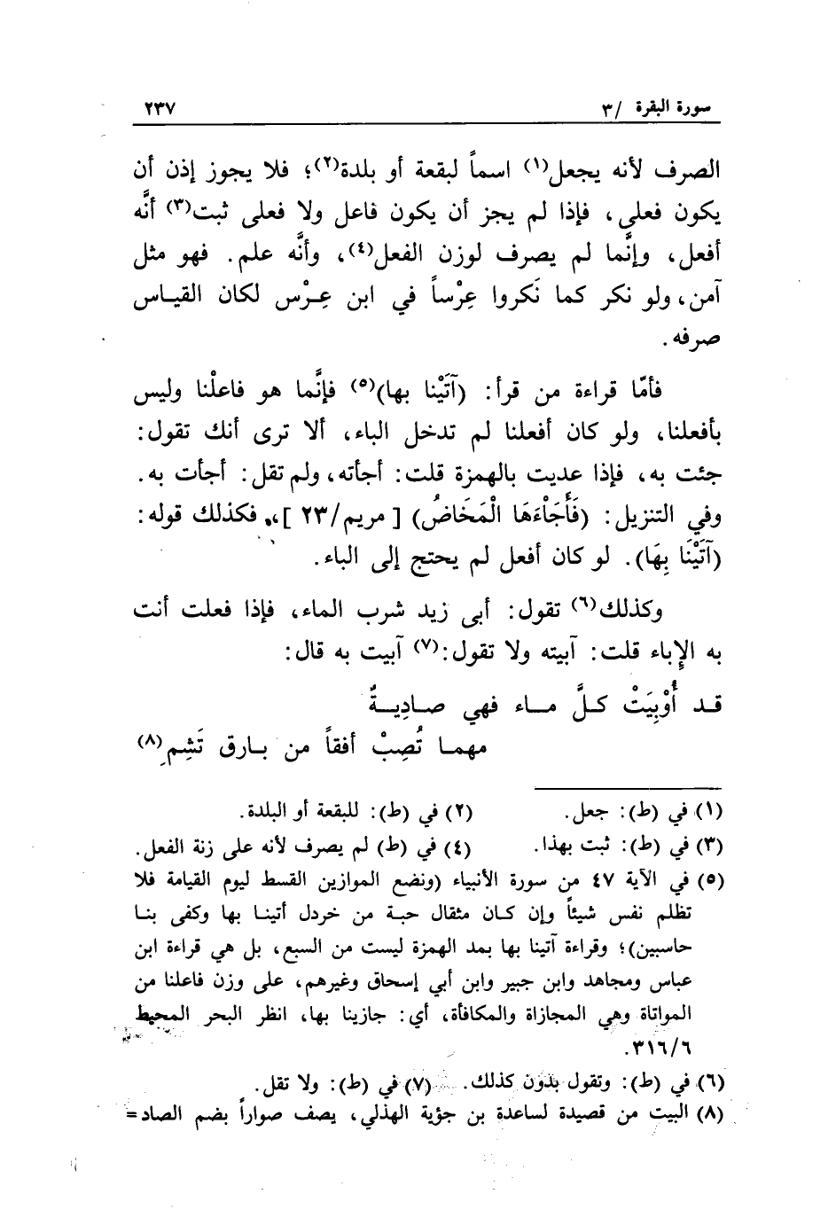 (8) البيت من قصيدة لساعدة بن جؤية الهذلي، يصف صوارا بضم الصاد