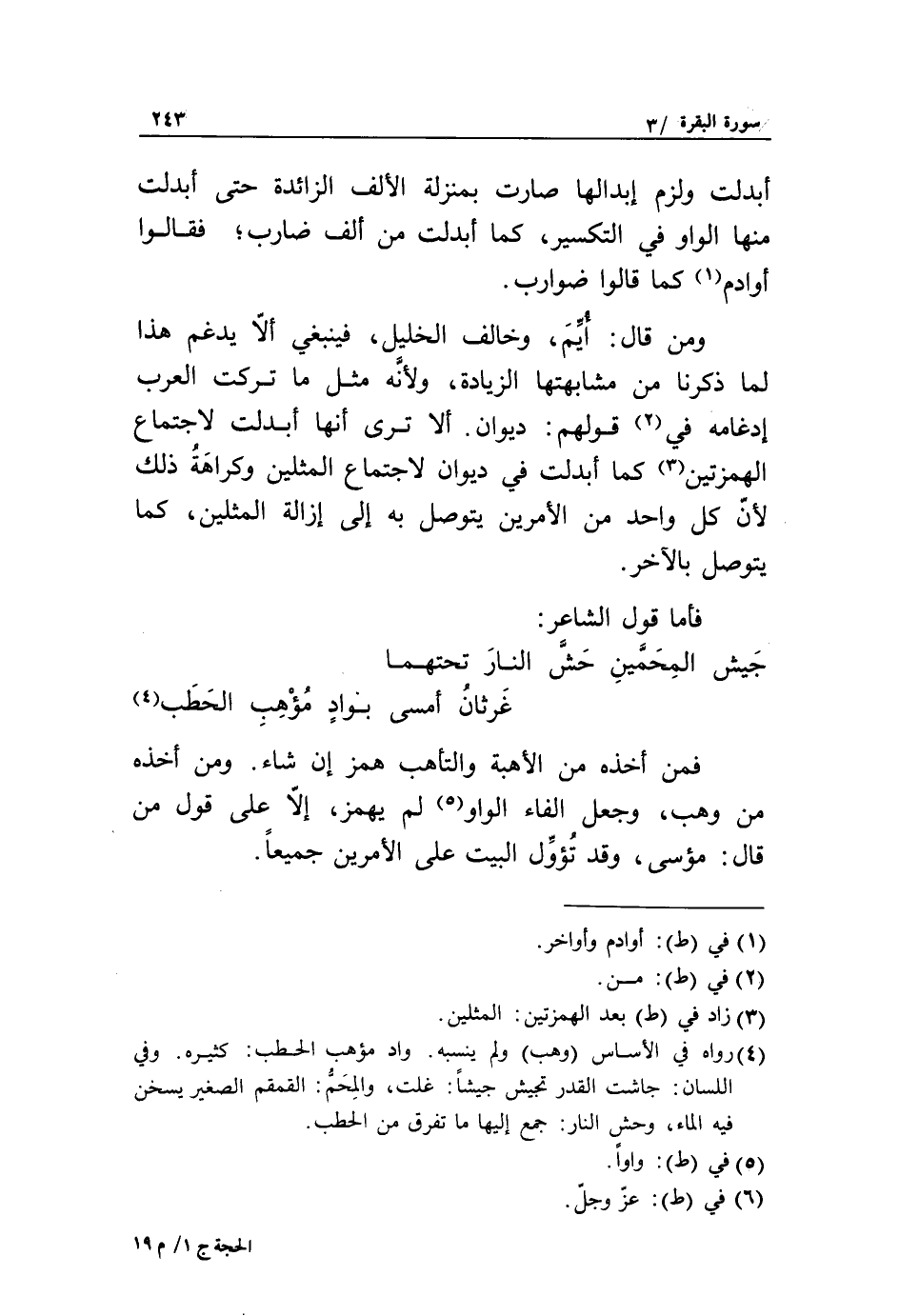 ومن قال: أيّم، وخالف الخليل، فينبغي ألّا يدغم هذا لما ذكرنا من مشابهتها الزيادة، ولأنّه مثل ما تركت العرب إدغامه في «2» قولهم: ديوان. ألا ترى أنها أبدلت لاجتماع الهمزتين «3» كما أبدلت في ديوان لاجتماع المثلين وكراهة ذلك لأنّ كل واحد من الأمرين يتوصل به إلى إزالة المثلين، كما يتوصل بالآخر.