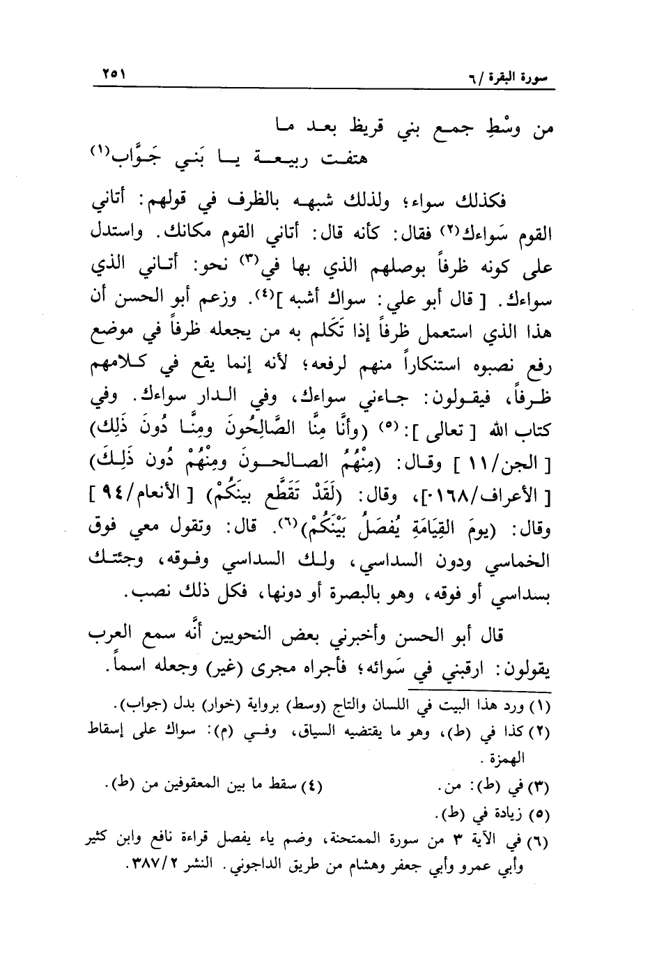 قال أبو الحسن وأخبرني بعض النحويين أنّه سمع العرب يقولون: ارقبني في سوائه، فأجراه مجرى (غير) وجعله اسما.