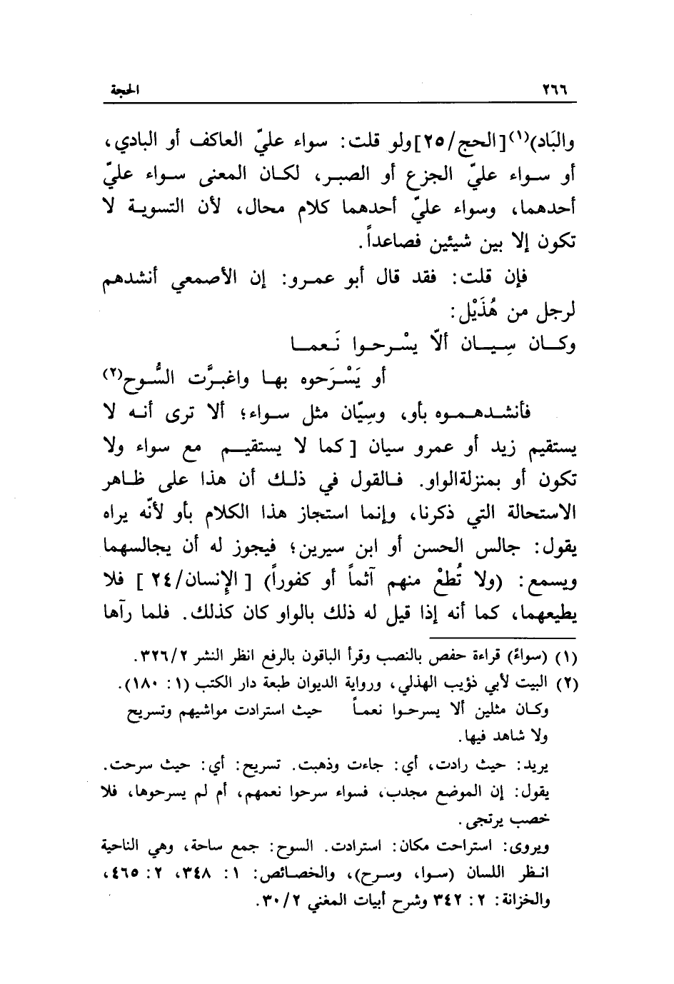 (2) البيت لأبي ذؤيب الهذلي، ورواية الديوان طبعة دار الكتب (1: 180).