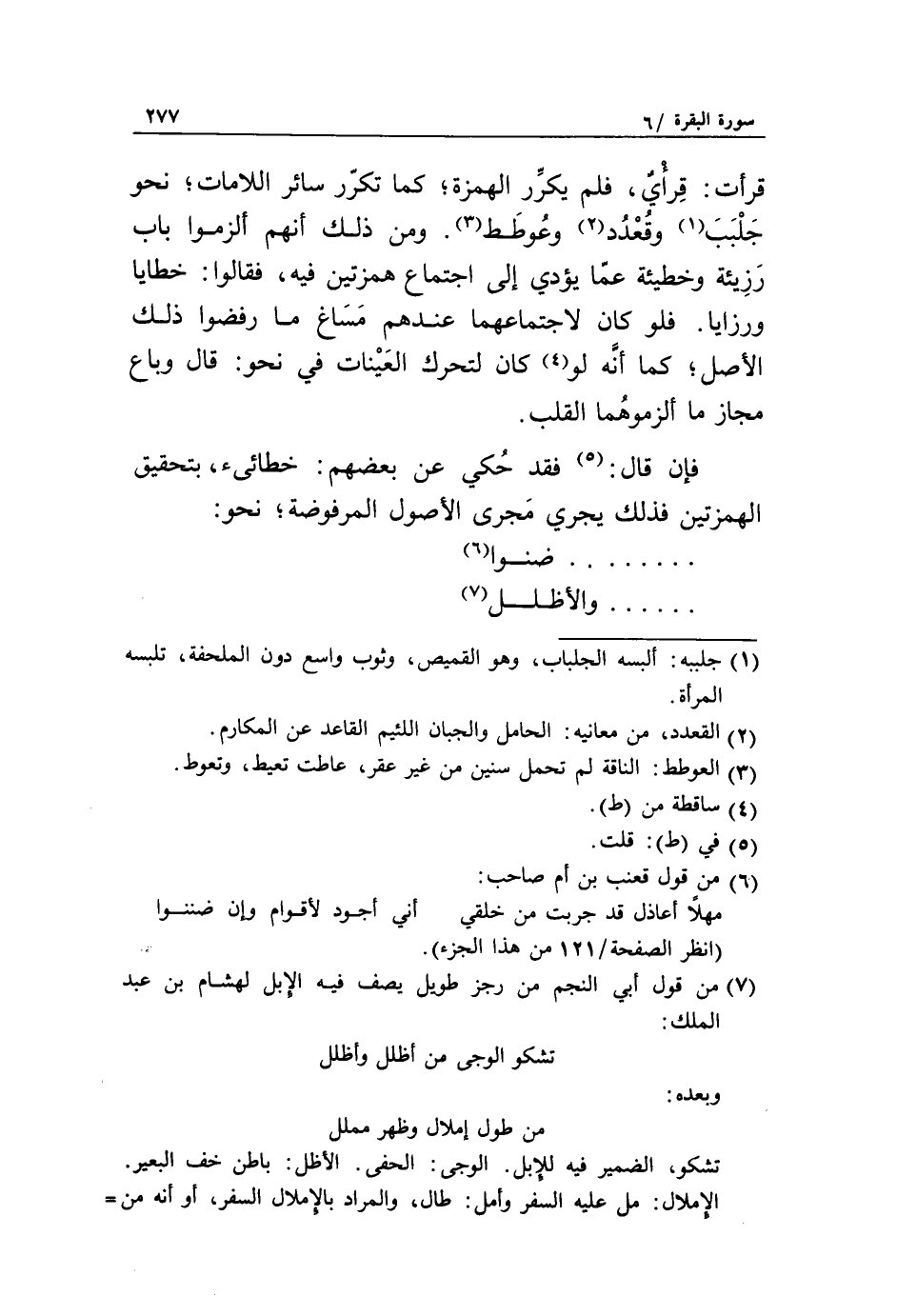 (7) من قول أبي النجم من رجز طويل يصف فيه الإبل لهشام بن عبد الملك: