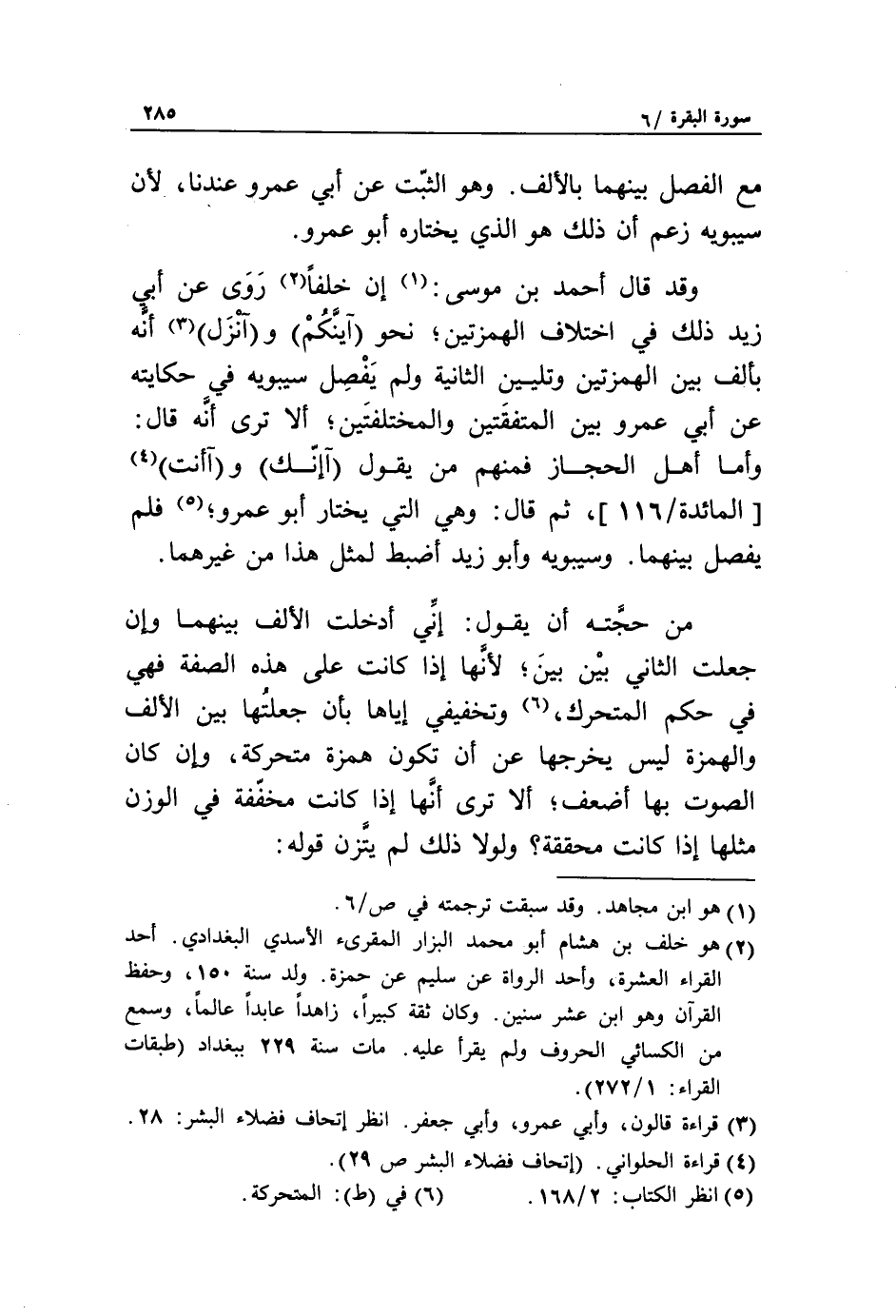 (2) هو خلف بن هشام أبو محمد البزار المقرئ الأسدي البغدادي. أحد القراء العشرة، وأحد الرواة عن سليم عن حمزة. ولد سنة 150، وحفظ القرآن وهو ابن عشر سنين. وكان ثقة كبيرا، زاهدا عابدا عالما، وسمع من الكسائي الحروف ولم يقرأ عليه. مات سنة 229 ببغداد (طبقات القراء: 1/ 272).