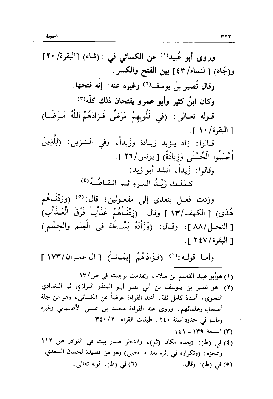 كذلك زيد المرء ثم انتقاصه «4» وزدت فعل يتعدى إلى مفعولين؛ قال: «5» وَزِدْناهُمْ هُدىً [الكهف/ 13] وقال: زِدْناهُمْ عَذاباً فَوْقَ الْعَذابِ [النحل/ 88]، وقال: وَزادَهُ بَسْطَةً فِي الْعِلْمِ وَالْجِسْمِ [البقرة/ 247].