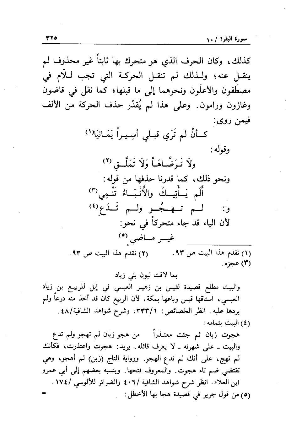 ألم يأتيك والأنباء تنمي «3» و: لم تهجو ولم تدع «4» لأن الياء قد جاء متحركا في نحو: