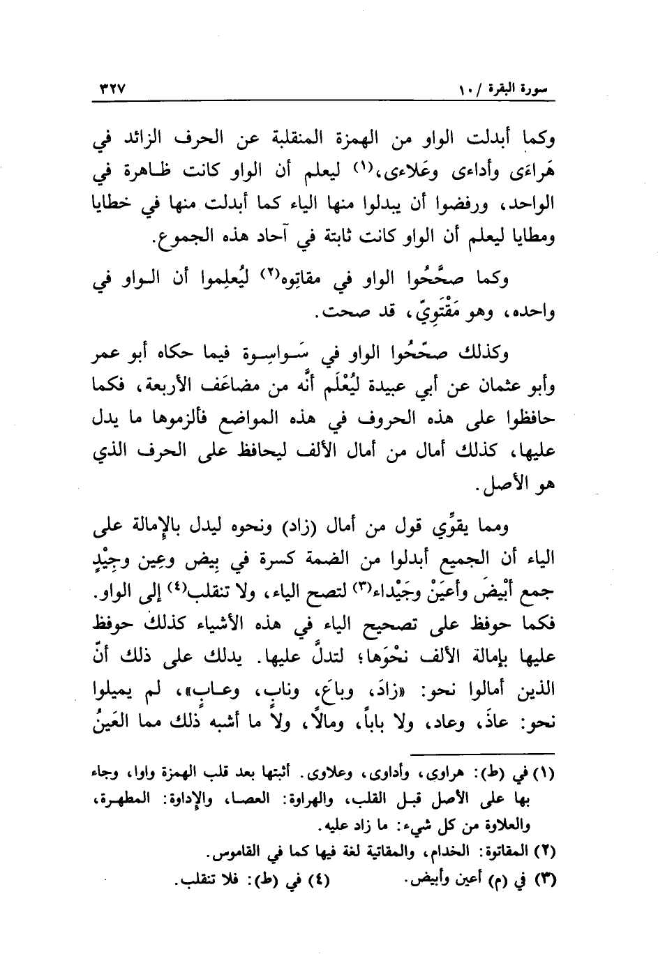 وكما أبدلت الواو من الهمزة المنقلبة عن الحرف الزائد في هراءى وأداءى وعلاءى، «1» ليعلم أن الواو كانت ظاهرة في الواحد، ورفضوا أن يبدلوا منها الياء كما أبدلت منها في خطايا ومطايا ليعلم أن الواو كانت ثابتة في آحاد هذه الجموع.