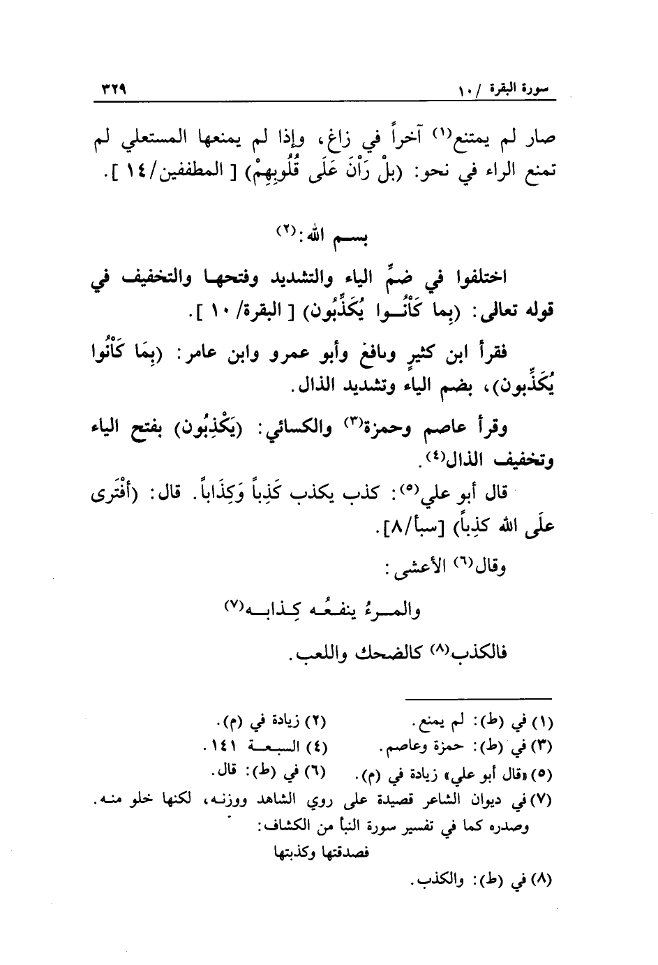 بسم الله: «2» اختلفوا في ضمّ الياء والتشديد وفتحها والتخفيف في قوله تعالى: بِما كانُوا يَكْذِبُونَ [البقرة/ 10].