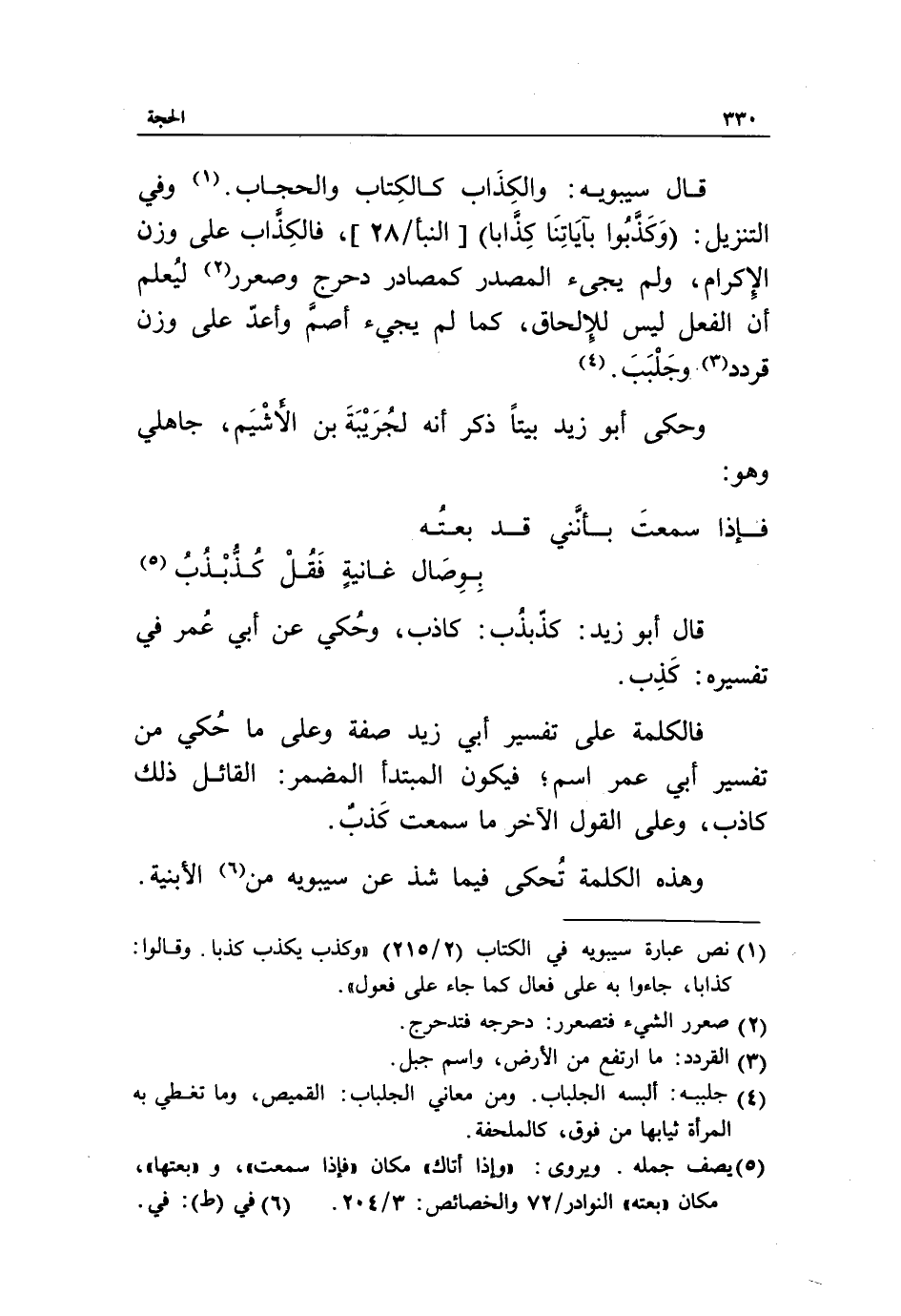 (1) نص عبارة سيبويه في الكتاب (2/ 215) «وكذب يكذب كذبا. وقالوا: