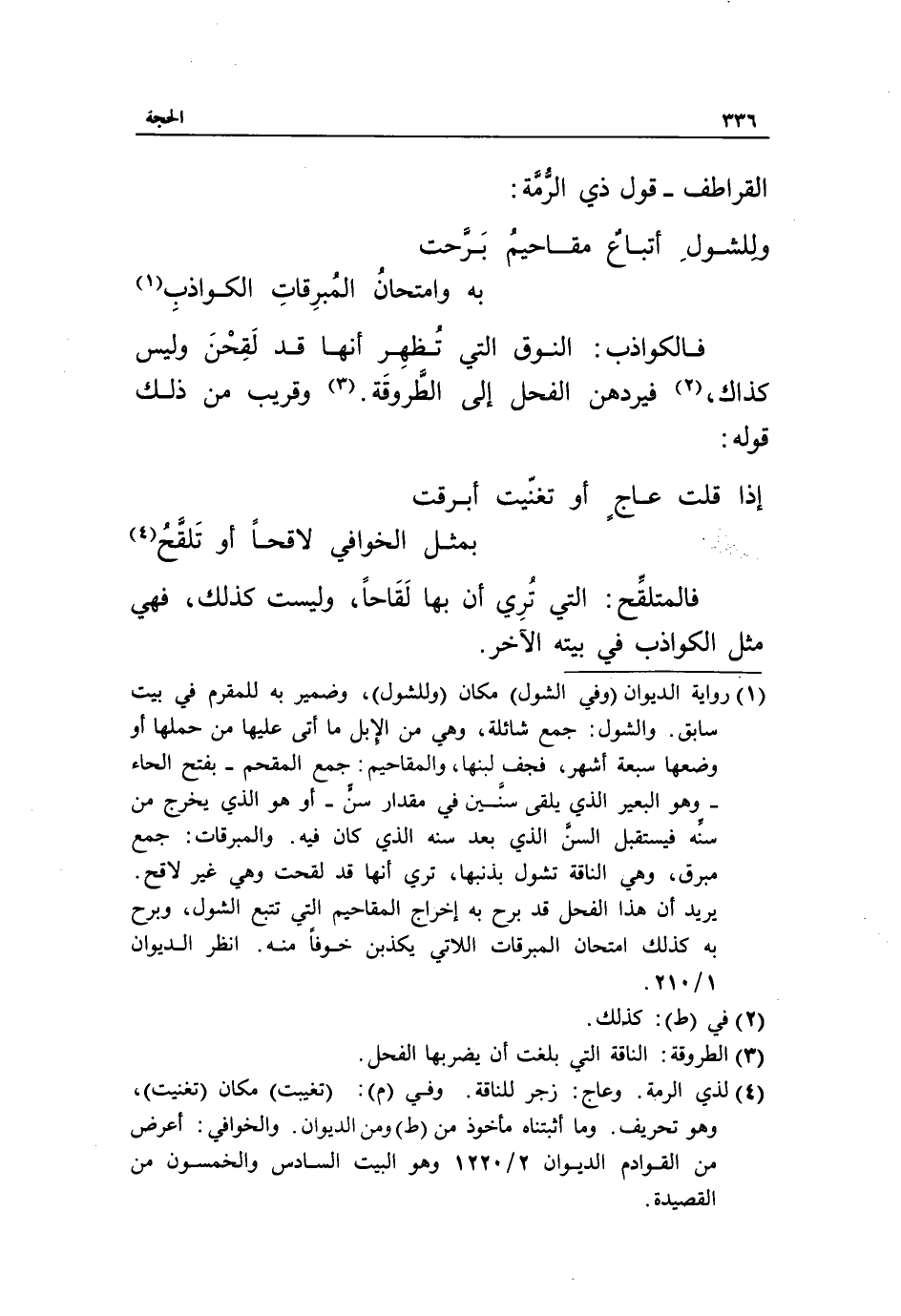 «1» فالكواذب: النوق التي تظهر أنها قد لقحن وليس كذاك، «2» فيردهن الفحل إلى الطّروقة. «3» وقريب من ذلك قوله: