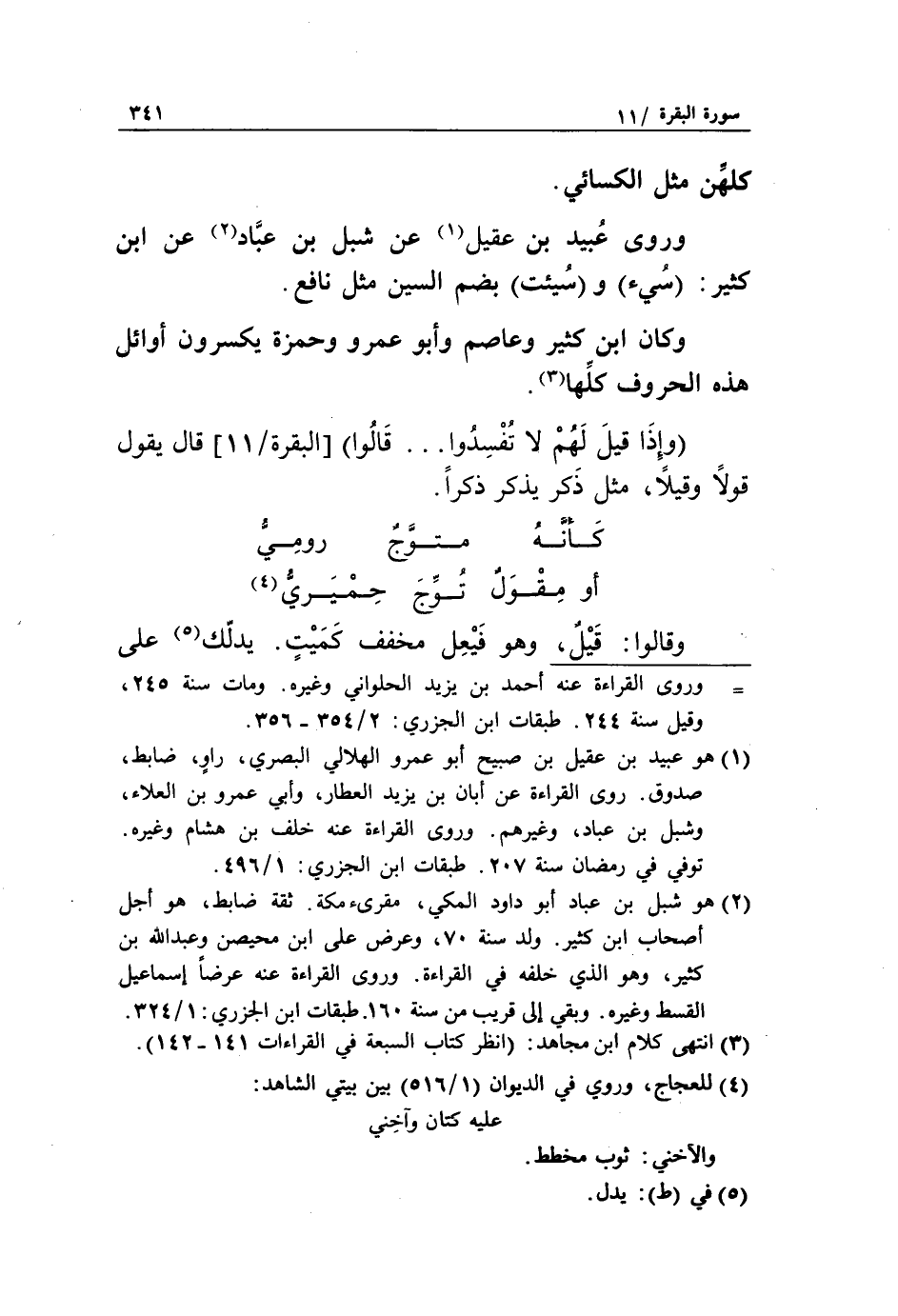 (3) انتهى كلام ابن مجاهد: (انظر كتاب السبعة في القراءات 141 - 142).