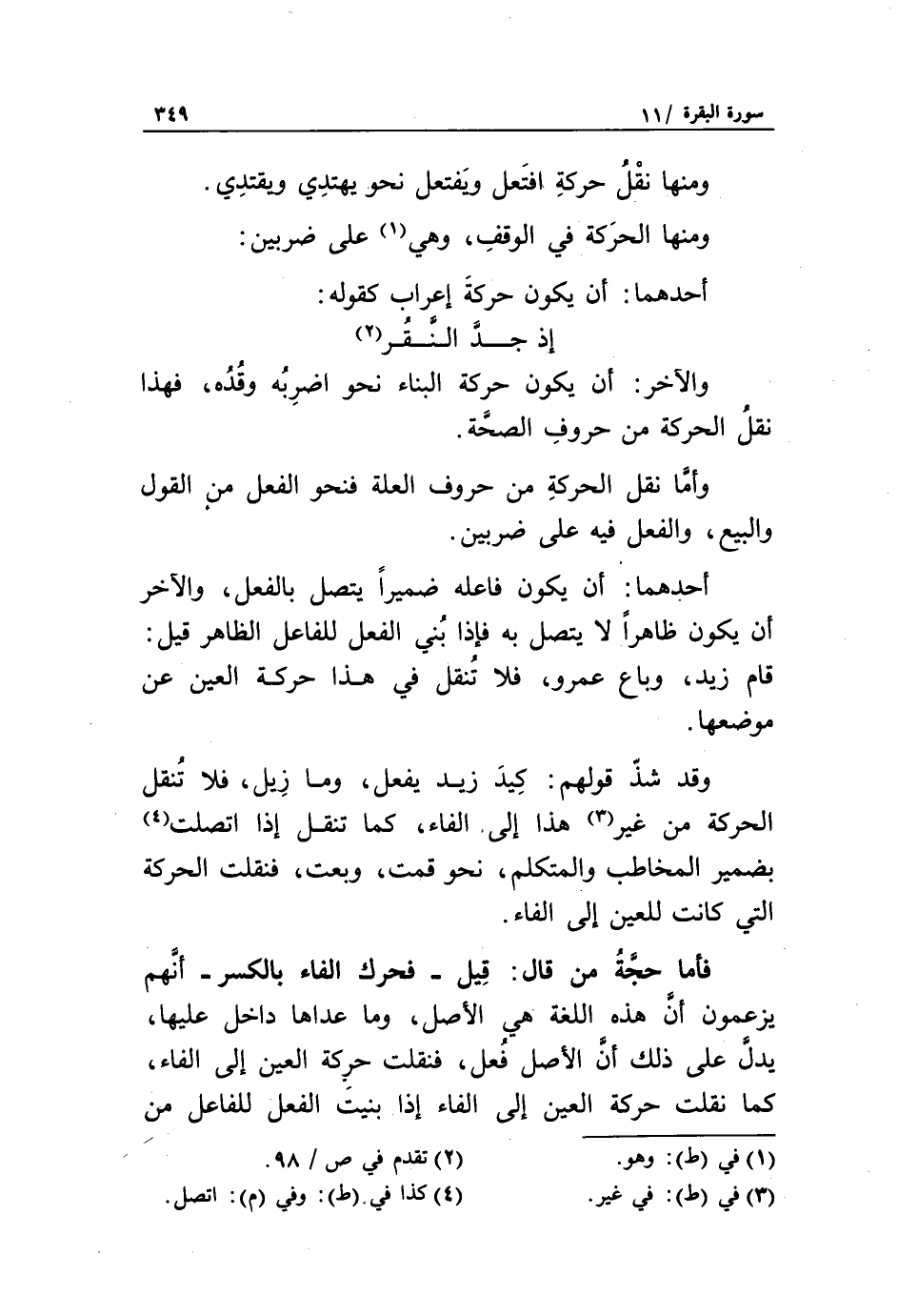 ومنها الحركة في الوقف، وهي «1» على ضربين: