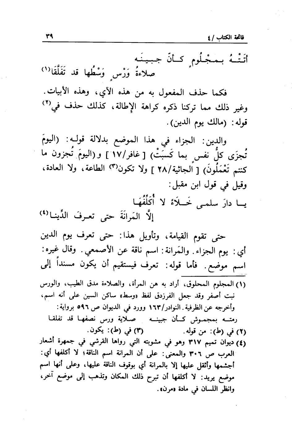 وغير ذلك مما تركنا ذكره كراهة الإطالة، كذلك حذف في «2» قوله: مالِكِ يَوْمِ الدِّينِ.