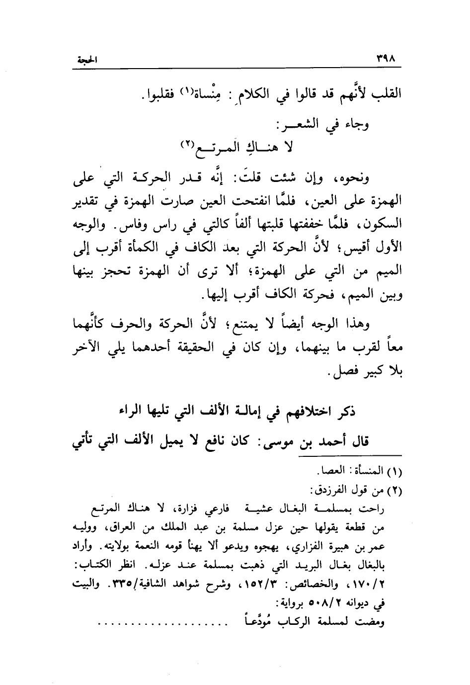 لا هناك المرتع «2» ونحوه، وإن شئت قلت: إنّه قدر الحركة التي على الهمزة على العين، فلمّا انفتحت العين صارت الهمزة في تقدير السكون، فلمّا خففتها قلبتها ألفا كالتي في راس وفاس. والوجه الأول أقيس، لأنّ الحركة التي بعد الكاف في الكمأة أقرب إلى الميم من التي على الهمزة، ألا ترى أن الهمزة تحجز بينها وبين الميم، فحركة الكاف أقرب إليها.