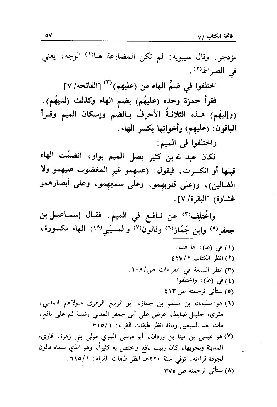 (7) هو عيسى بن مينا بن وردان، أبو موسى المري مولى بني زهرة، قارئ المدينة ونحويها، كان ربيب نافع واختص به كثيرا، وهو الذي سماه قالون لجودة قراءته. توفي سنة 220 هـ انظر طبقات القراء: 1/ 615.