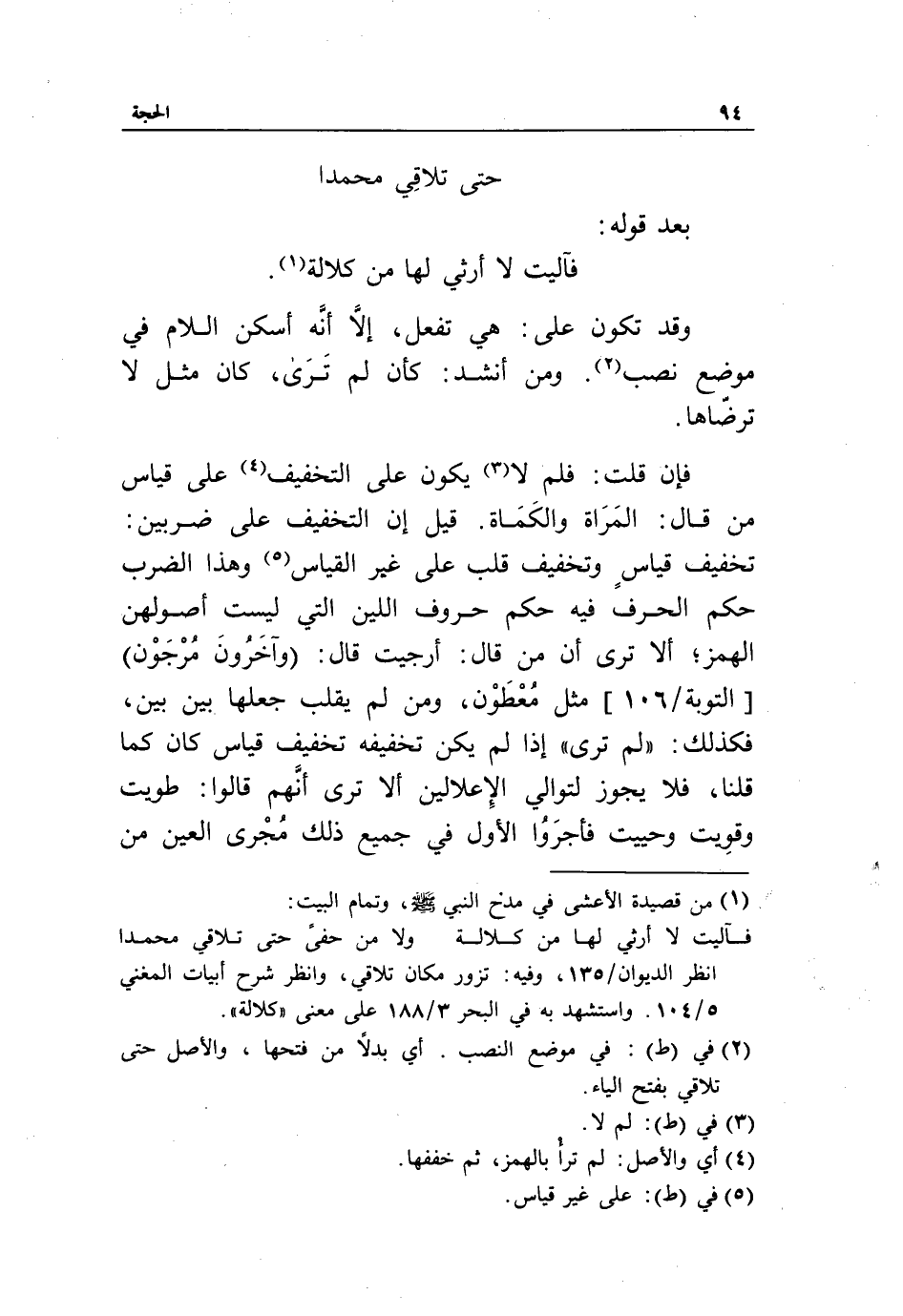 (2) في (ط): في موضع النصب. أي بدلا من فتحها، والأصل حتى تلاقي بفتح الياء.