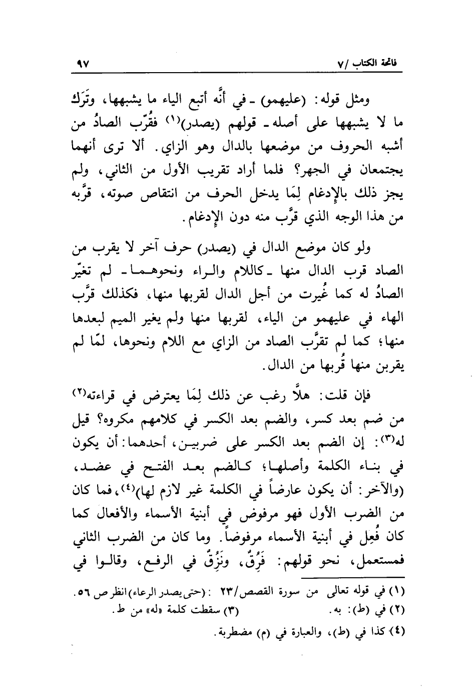 (1) في قوله تعالى من سورة القصص/ 23: (حَتَّى يُصْدِرَ الرِّعاءُ) انظر ص 56.