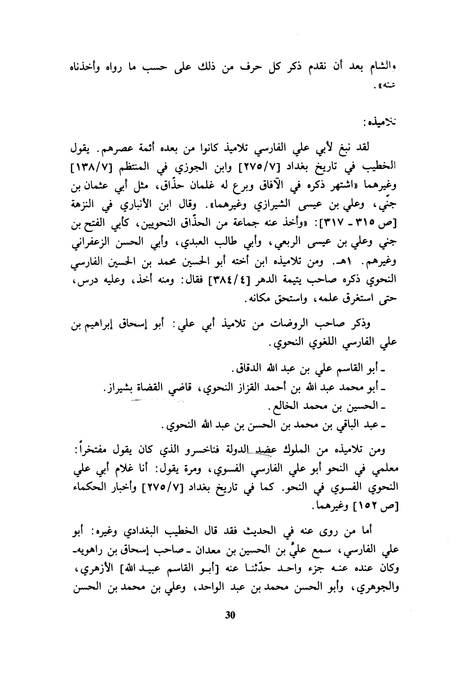 وذكر صاحب الروضات من تلاميذ أبي علي: أبو إسحاق إبراهيم بن علي الفارسي اللغوي النحوي.