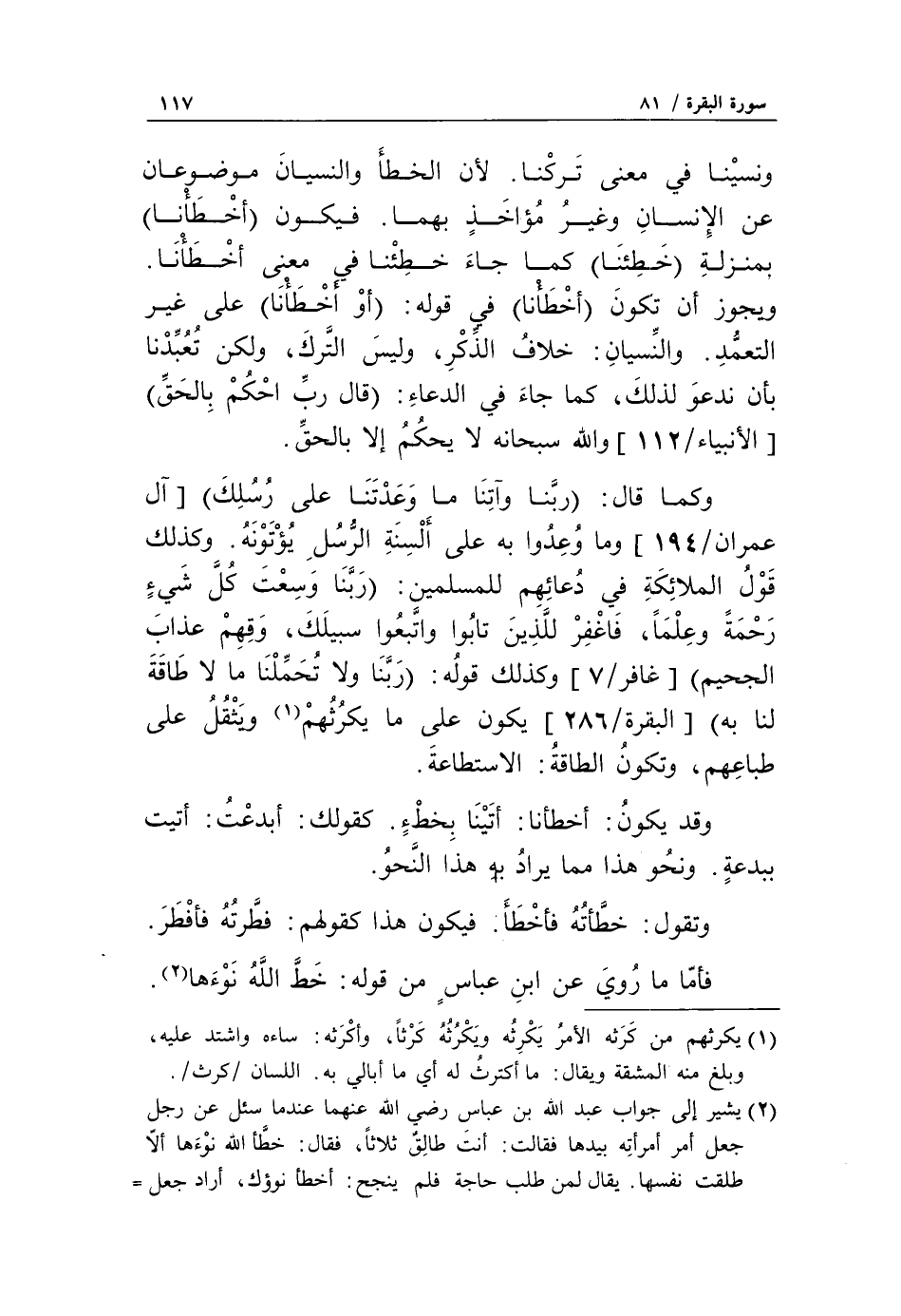 ويجوز أن تكون أَخْطَأْنا في قوله: أَوْ أَخْطَأْنا على غير التعمّد. والنّسيان: خلاف الذّكر، وليس التّرك، ولكن تعبّدنا بأن ندعو لذلك، كما جاء في الدعاء: قالَ رَبِّ احْكُمْ بِالْحَقِّ [الأنبياء/ 112] والله سبحانه لا يحكم إلا بالحقّ.
