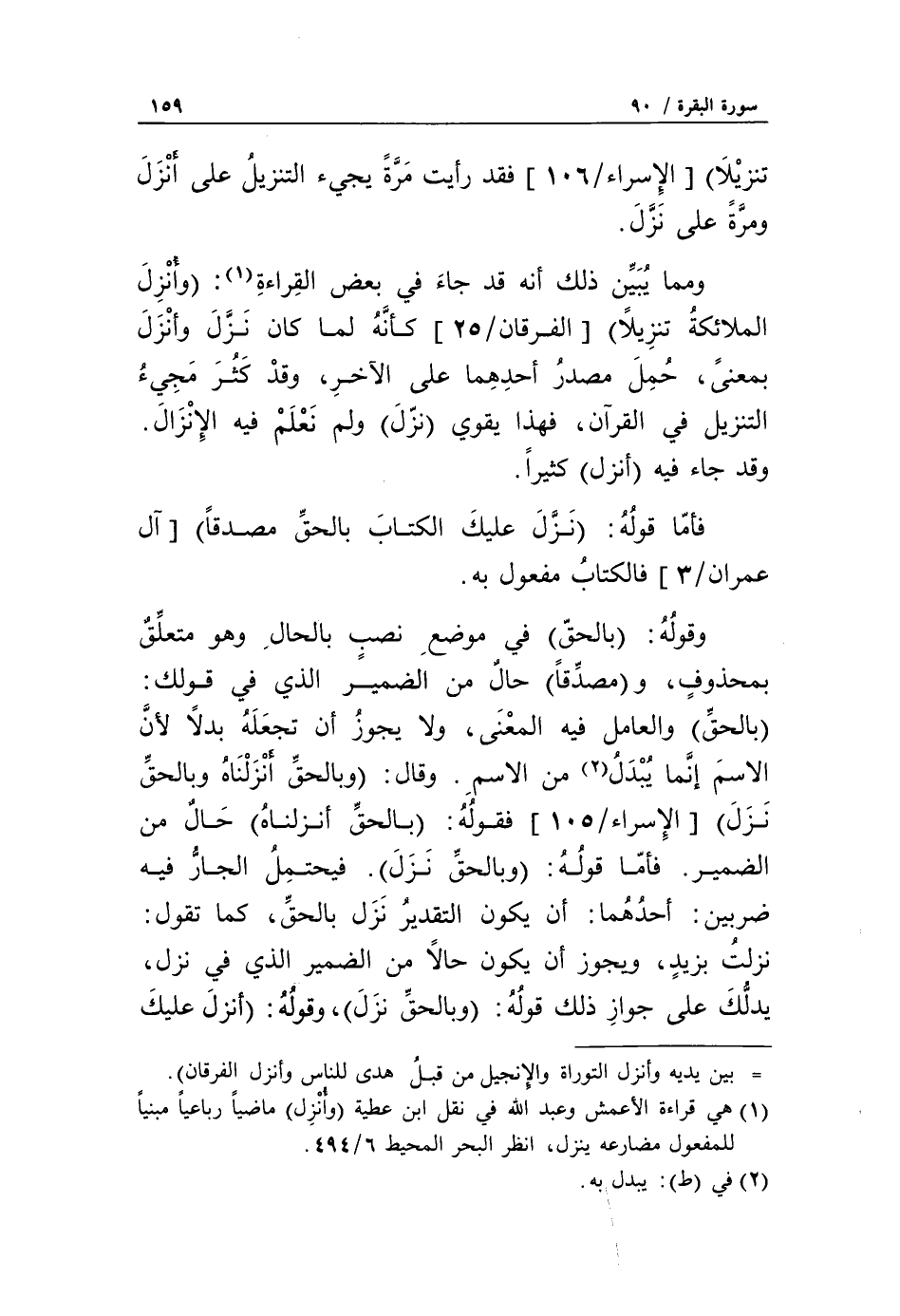 فأمّا قوله: نَزَّلَ عَلَيْكَ الْكِتابَ بِالْحَقِّ مُصَدِّقاً [آل عمران/ 3] فالكتاب مفعول به.