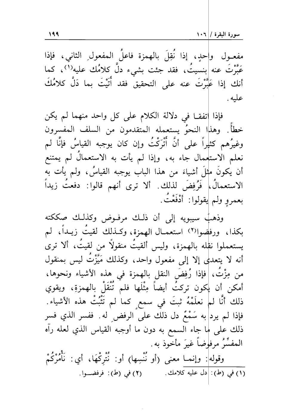 فإذا لم يرد به سمع دل ذلك على الرفض له. ففسر الذي فسر ذلك على ما جاء السمع به دون ما أوجبه القياس الذي لعله رآه المفسّر مرفوضاً غير مأخوذ به.
