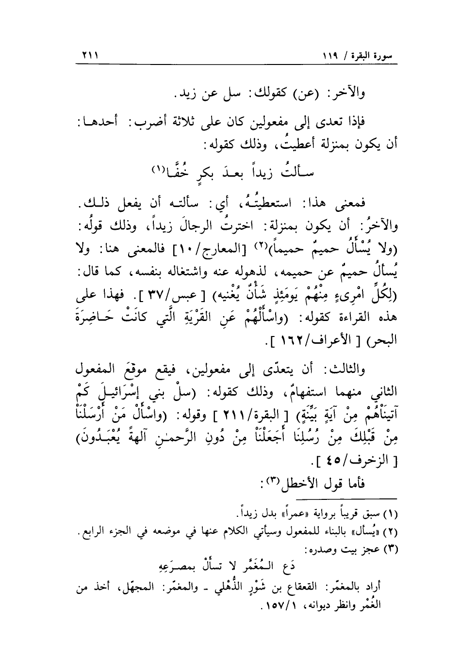 (2) «يسأل» بالبناء للمفعول وسيأتي الكلام عنها في موضعه في الجزء الرابع.