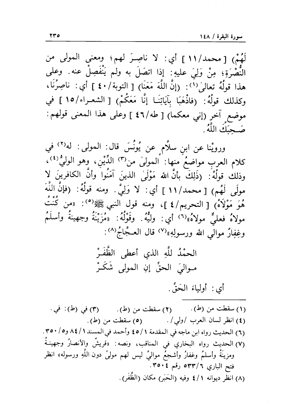 الحمد لله الذي أعطى الظّفر موالي الحقّ إن المولى شكر أي: أولياء الحقّ.