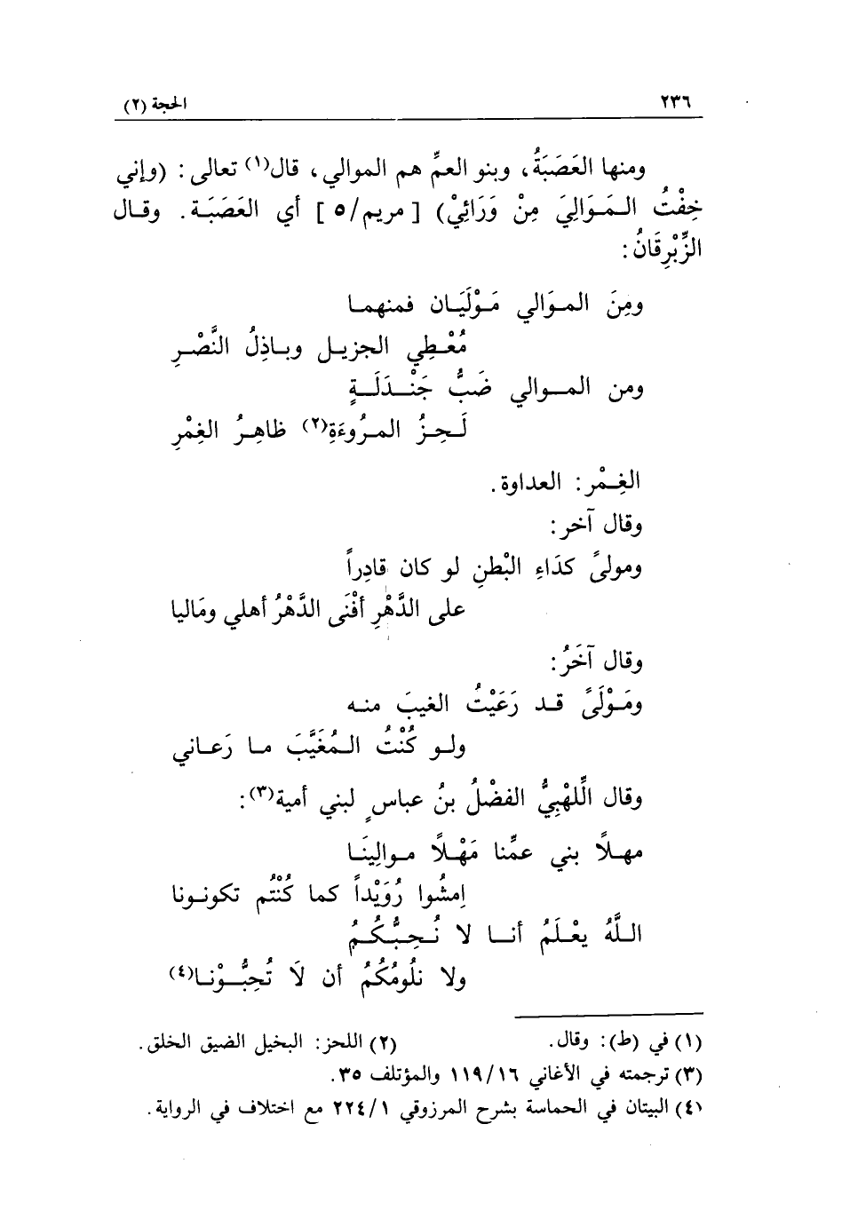 (4) البيتان في الحماسة بشرح المرزوقي 1/ 224 مع اختلاف في الرواية.