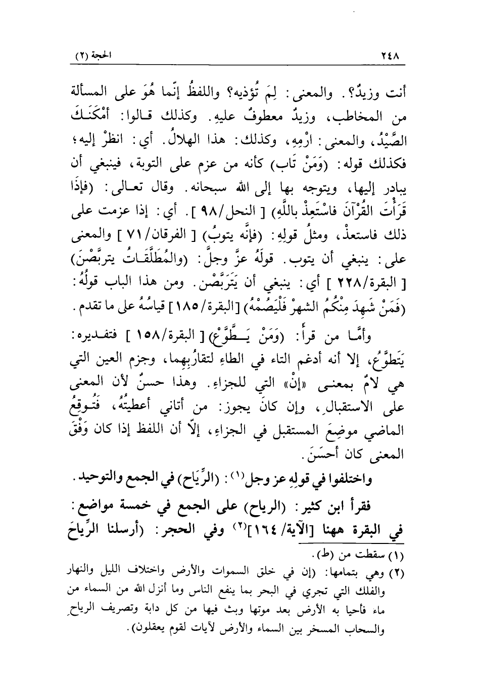(2) وهي بتمامها: إِنَّ فِي خَلْقِ السَّماواتِ وَالْأَرْضِ وَاخْتِلافِ اللَّيْلِ وَالنَّهارِ وَالْفُلْكِ الَّتِي تَجْرِي فِي الْبَحْرِ بِما يَنْفَعُ النَّاسَ وَما أَنْزَلَ اللَّهُ مِنَ السَّماءِ مِنْ ماءٍ فَأَحْيا بِهِ الْأَرْضَ بَعْدَ مَوْتِها وَبَثَّ فِيها مِنْ كُلِّ دَابَّةٍ وَتَصْرِيفِ الرِّياحِ وَالسَّحابِ الْمُسَخَّرِ بَيْنَ السَّماءِ وَالْأَرْضِ لَآياتٍ لِقَوْمٍ يَعْقِلُونَ.