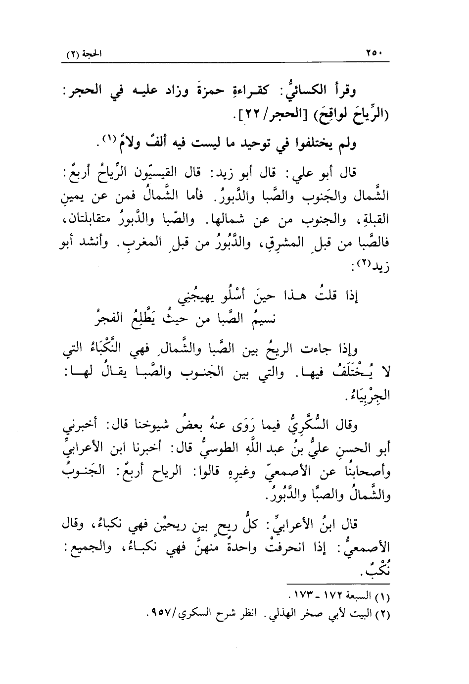 قال أبو علي: قال أبو زيد: قال القيسيّون الرّياح أربع: