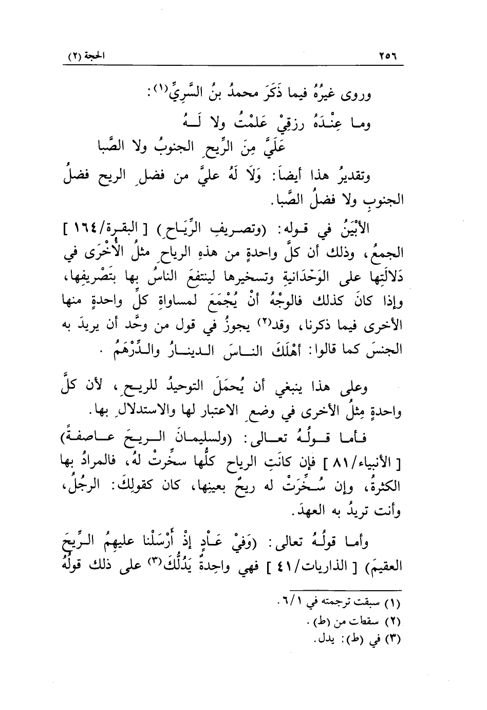 وعلى هذا ينبغي أن يحمل التوحيد للريح، لأن كلّ واحدة مثل الأخرى في وضع الاعتبار لها والاستدلال بها.