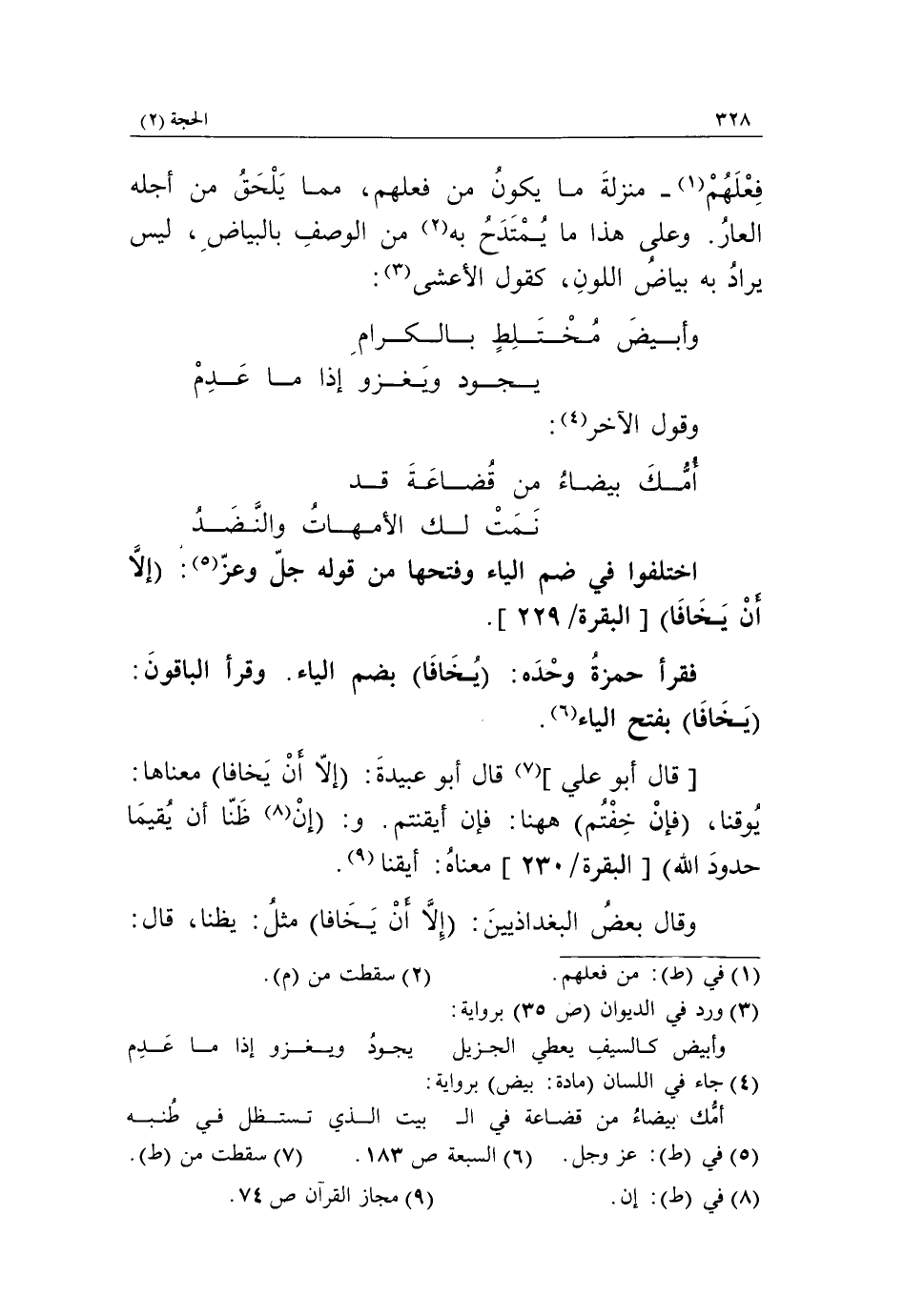 (4) جاء في اللسان (مادة: بيض) برواية: