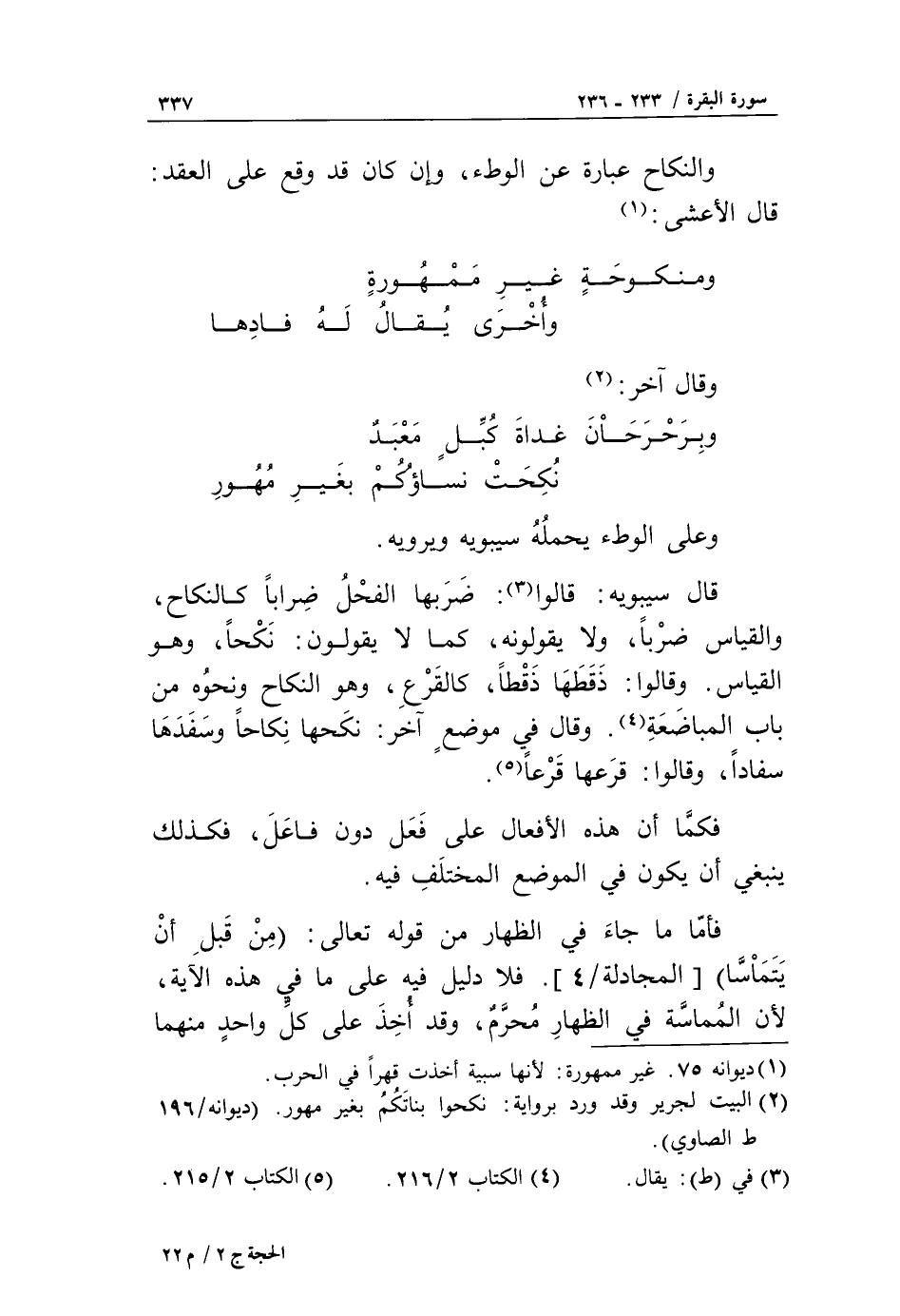 (2) البيت لجرير وقد ورد برواية: نكحوا بناتكم بغير مهور. (ديوانه/ 196 ط الصاوي).