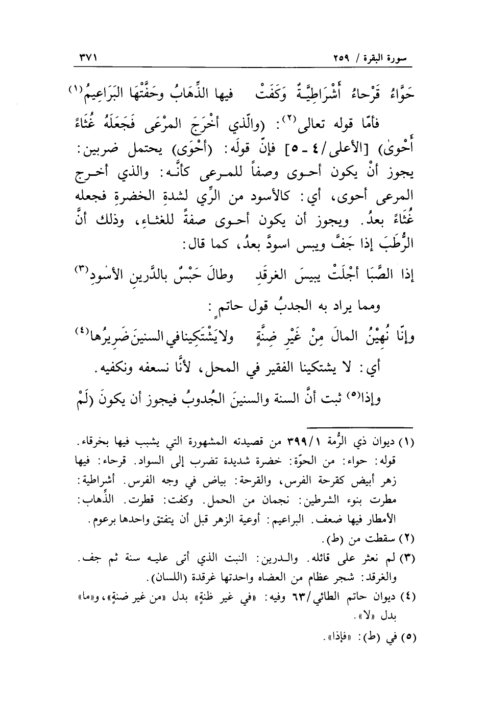 قوله: حواء: من الحوة: خضرة شديدة تضرب إلى السواد. قرحاء: فيها زهر أبيض كقرحة الفرس، والقرحة: بياض في وجه الفرس. أشراطية: