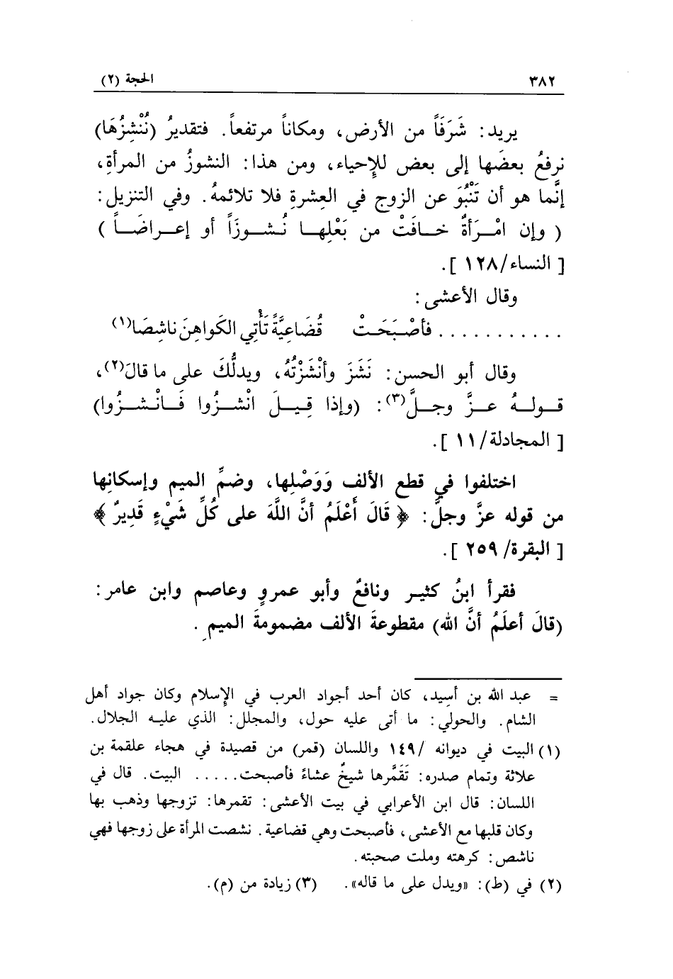 «1» وقال أبو الحسن: نشز وأنشزته، ويدلّك على ما قال «2»، قوله عزّ وجلّ «3»: وَإِذا قِيلَ انْشُزُوا فَانْشُزُوا [المجادلة/ 11].