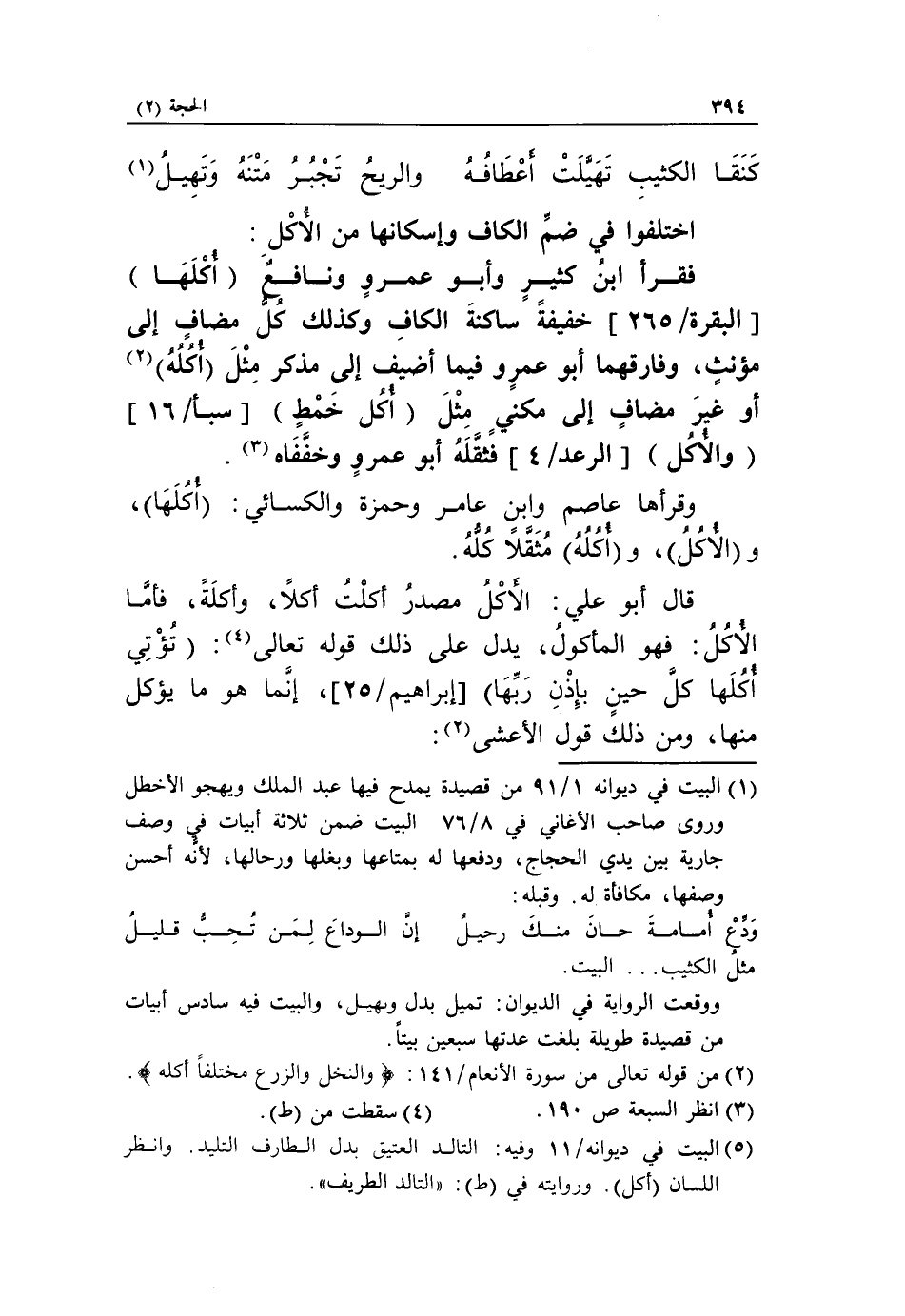 «1» اختلفوا في ضمّ الكاف وإسكانها من الأكل:
