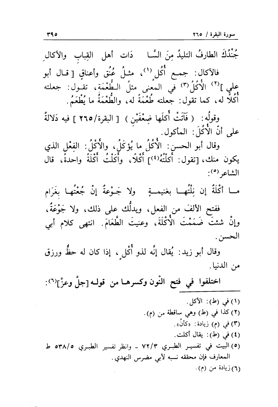 وقوله: فَآتَتْ أُكُلَها ضِعْفَيْنِ [البقرة/ 265] فيه دلالة على أنّ الأكل: المأكول.