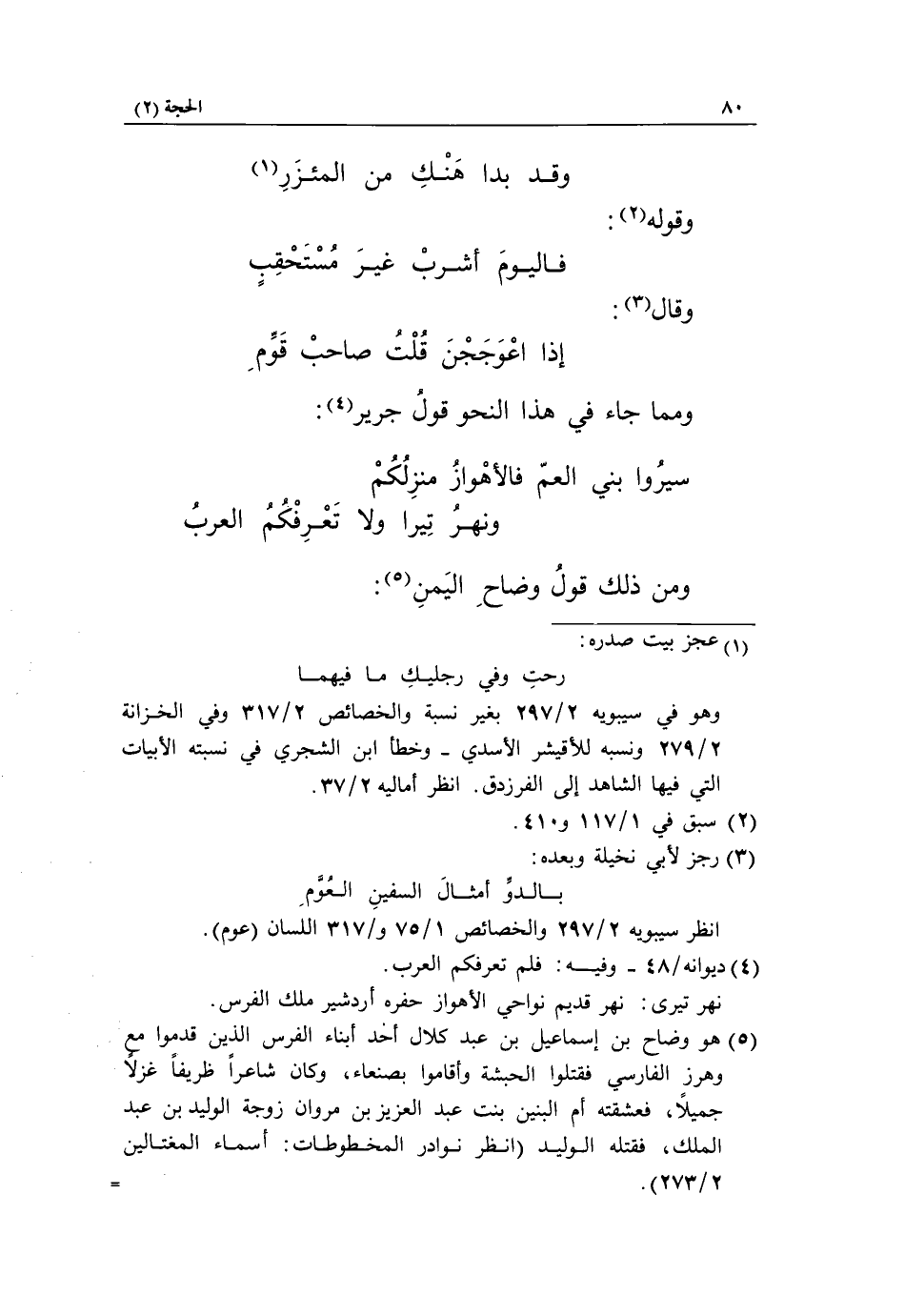 (5) هو وضاح بن إسماعيل بن عبد كلال أحد أبناء الفرس الّذين قدموا مع وهرز الفارسي فقتلوا الحبشة وأقاموا بصنعاء، وكان شاعرا ظريفا غزلا جميلا، فعشقته أم البنين بنت عبد العزيز بن مروان زوجة الوليد بن عبد الملك، فقتله الوليد (انظر نوادر المخطوطات: أسماء المغتالين 2/ 273).