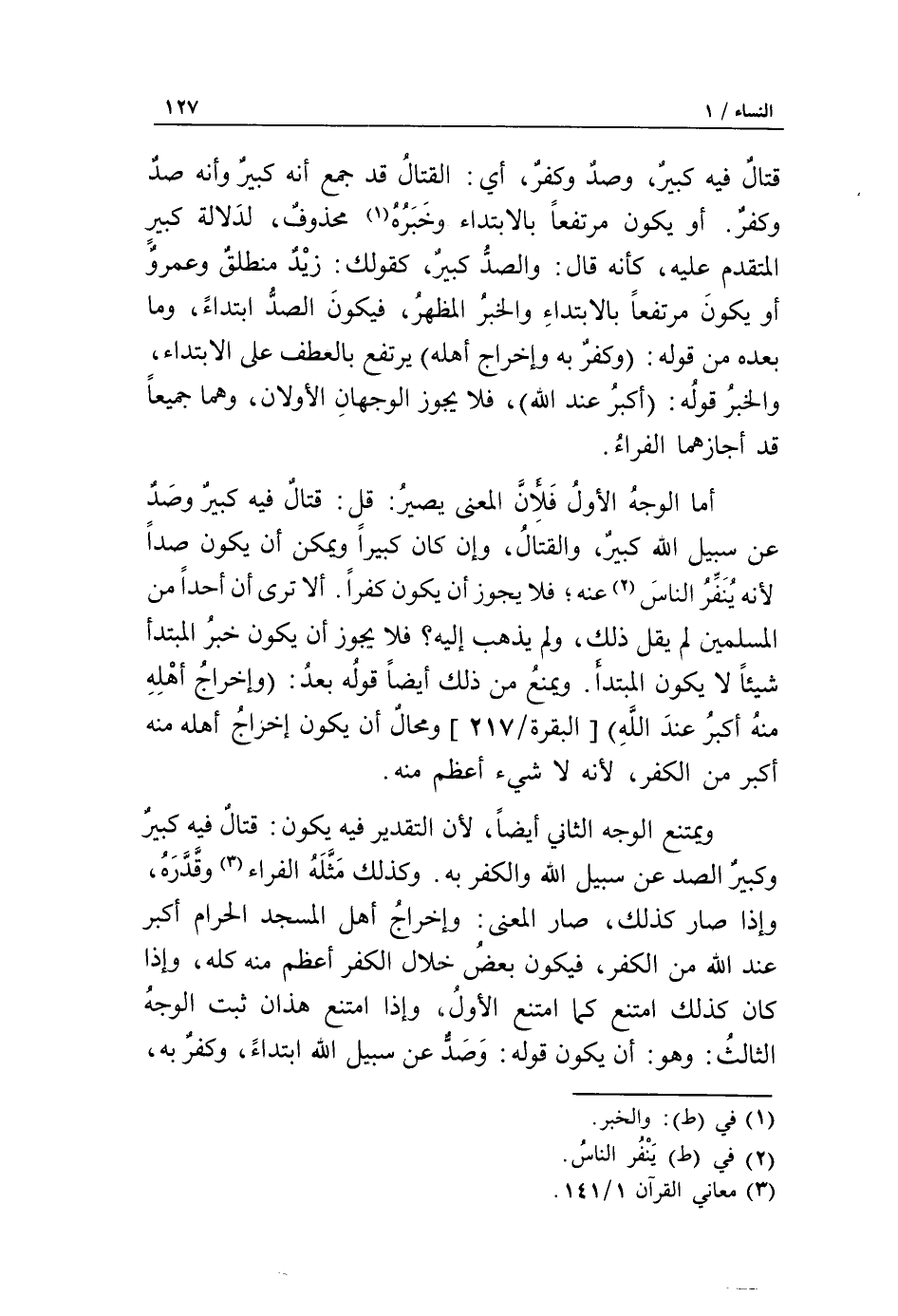 (3) معاني القرآن 1/ 141.