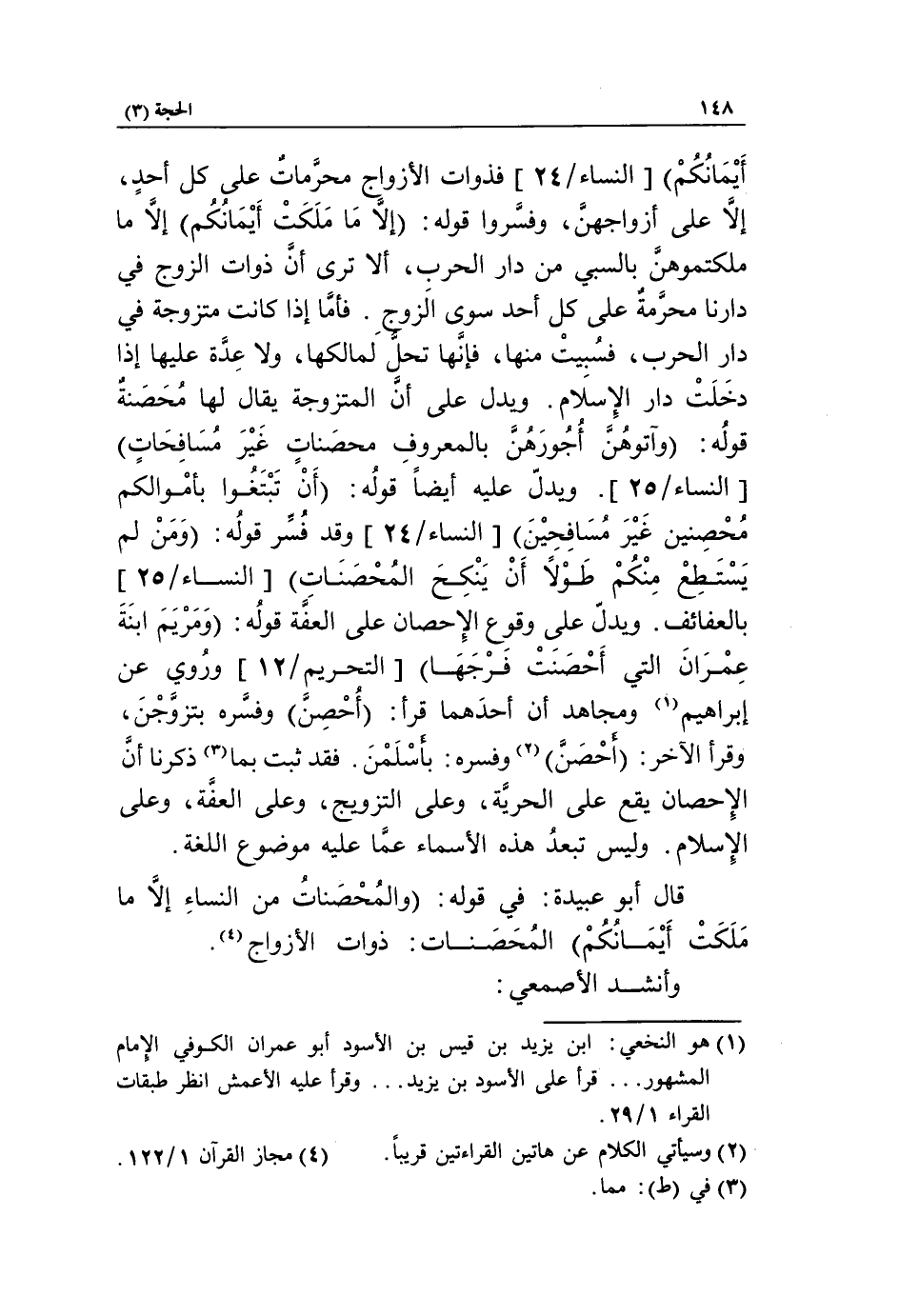 قال أبو عبيدة: في قوله: والمحصنات من النساء إلا ما ملكت أيمانكم المحصنات: ذوات الأزواج «4».