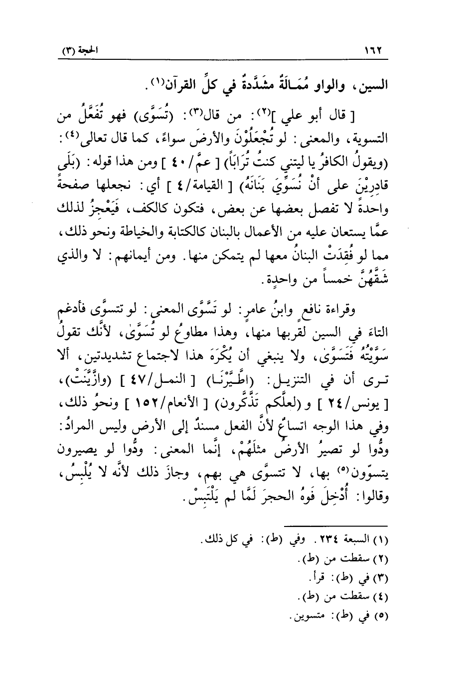 (1) السبعة 234. وفي (ط): في كل ذلك.