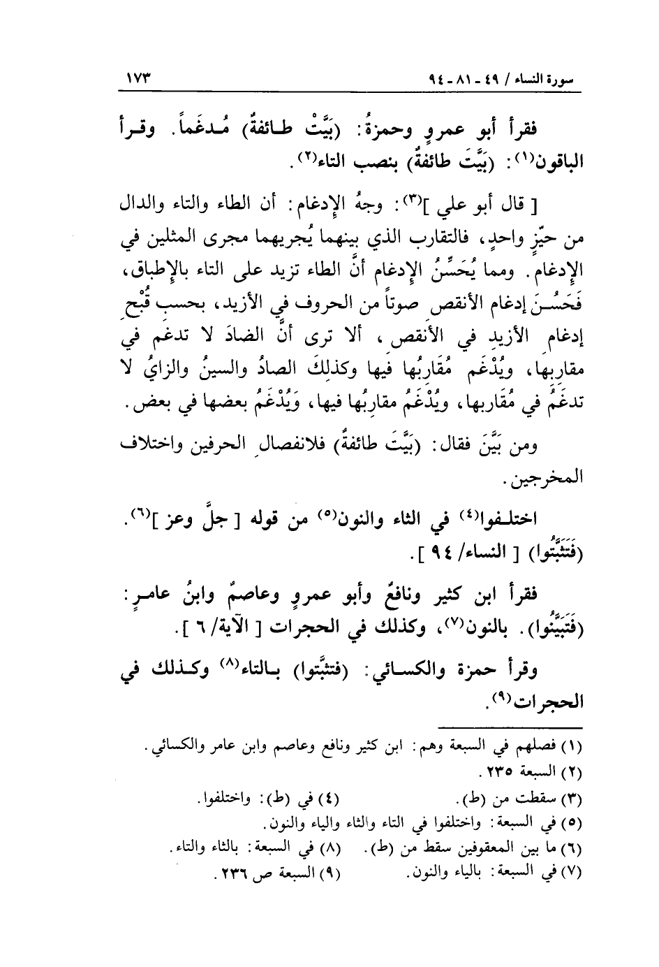 (9) السبعة ص 236.