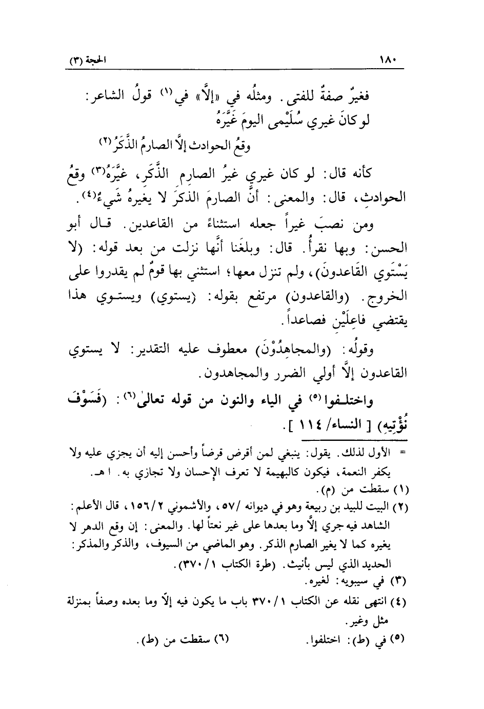 (4) انتهى نقله عن الكتاب 1/ 370 باب ما يكون فيه إلّا وما بعده وصفا بمنزلة مثل وغير.