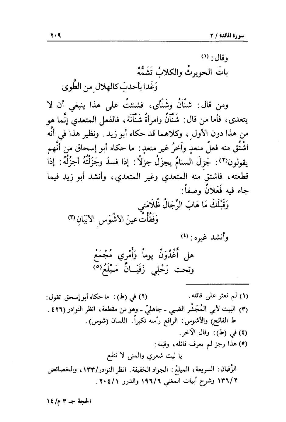 (3) البيت لأبي المجشّر الضبي- جاهليّ- وهو من مقطعة، انظر النوادر (426.