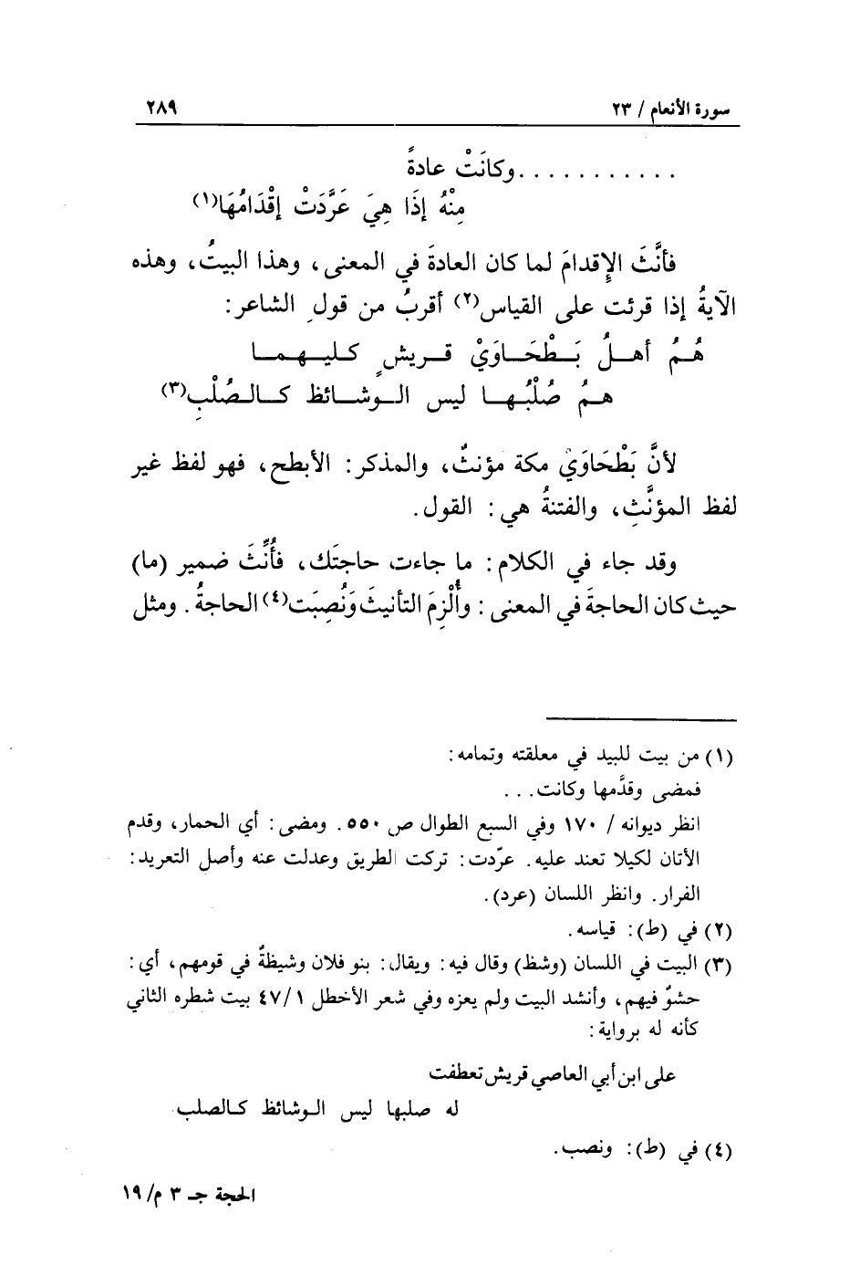 «3» لأنّ بطحاوي مكة مؤنث، والمذكر: الأبطح، فهو لفظ غير لفظ المؤنّث، والفتنة هي: القول.