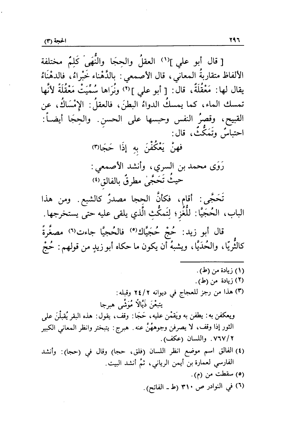 [قال أبو علي] «1» العقل والحجا والنّهى كلم مختلفة الألفاظ متقاربة المعاني، قال الأصمعي: بالدّهناء خبراء، فالدهناء يقال لها: معقلة، قال: [أبو علي] «2» ونراها سمّيت